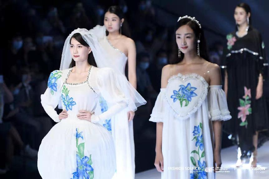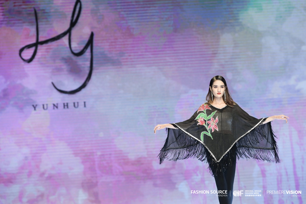 东莞市云惠时尚毛衫工作室,主理人梁嘉莱,新晋毛织服装设计师。商务英语专业毕业的她,出身于毛织世家,自幼喜欢绘画,师从于著名服装专家、针织力量平台创始人陈娟。她的梦想是把自己的绘画穿在美女身上,本届联合秀,她以毛衫为画布,使用特殊颜料,亲手绘制美丽的花卉系列,表达对党的热爱、对生活的憧憬。本次,她的作品一举夺得第9届深圳原创设计时装周“最具商业价值”奖。