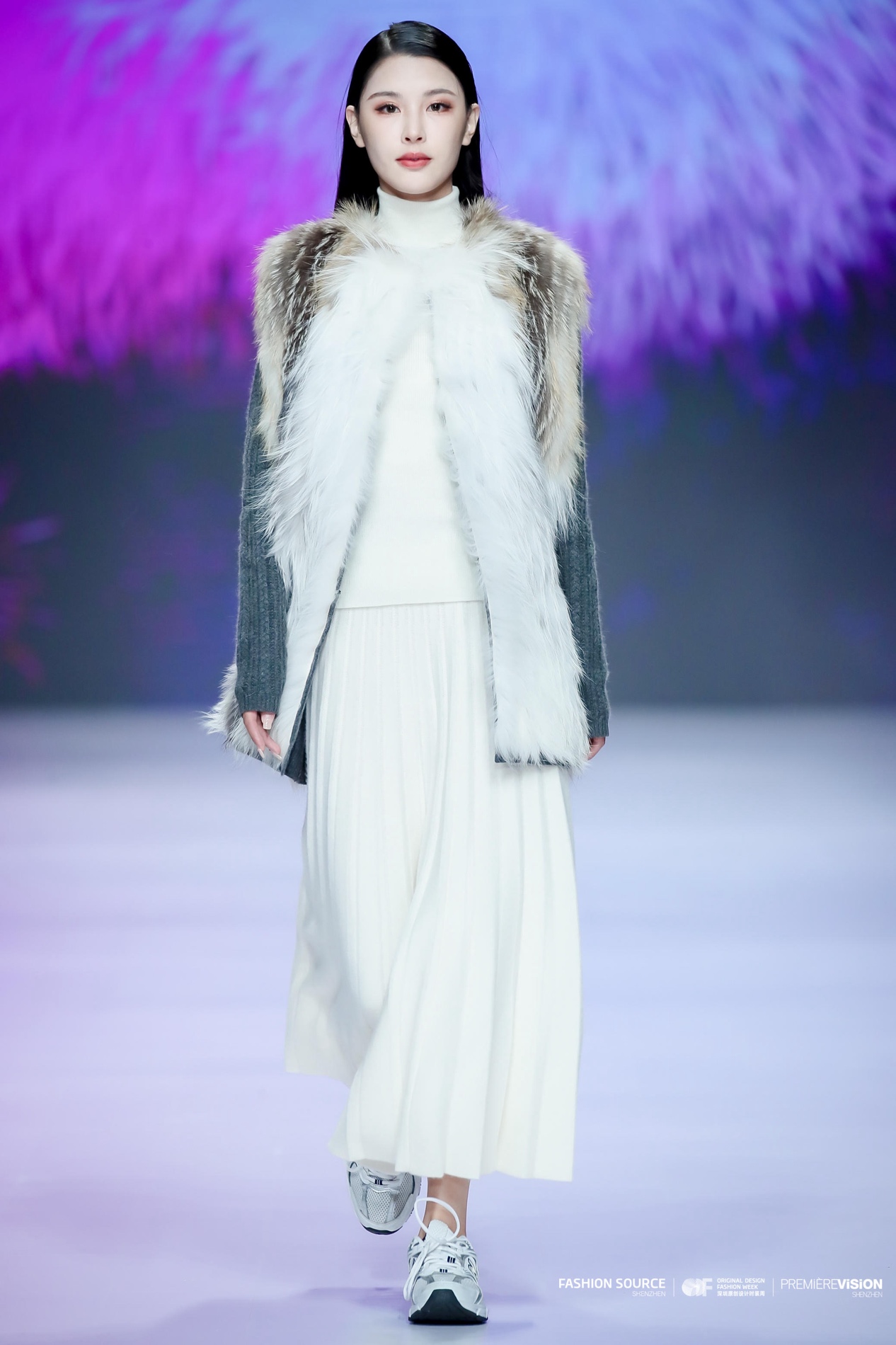 本次联合秀以“轻薄皮草+精致羊绒=南方新冬装”这一新颖概念,精心研发皮草羊绒系列,原料精良、色彩诱人,细节大气温馨,赢得了现场观众的一致好评。同时,皮草与毛织相结合是提高羊绒毛织产品附加值的重要举措,利用毛织品的的特性结合相对应的皮草工艺,不仅可以减轻皮草整体的厚重感,更能为产品增添舒适感,使之轻薄飘逸,在款式开发上也有了更多的选择,消除人们对于皮草只适合寒冷北方的刻板印象,针对市场开发出轻盈、保暖、具有价值感又年轻活力的产品,从而拓展南方的市场份额。
