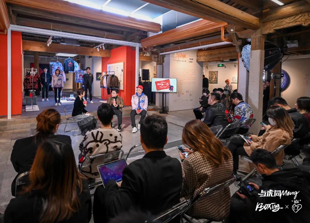本次发布会突破传统程式化服装发布形态,选择在闽南红砖古厝建筑里,浸润在盒止美术馆正在举办的《生命手帐 | 我们的2020-2021》艺术展中,以一场艺术沙龙对话的方式铺陈发布,打造沉浸式美学体验。劲霸男装创意总监洪伯明与潮流艺术家歪歪在闽南非遗文化南音中,就传统与当代的人文美学深思展开对谈,分享虎年胶囊联名系列创作理念,多维度全方位呈递劲霸男装虎年联名胶囊系列。