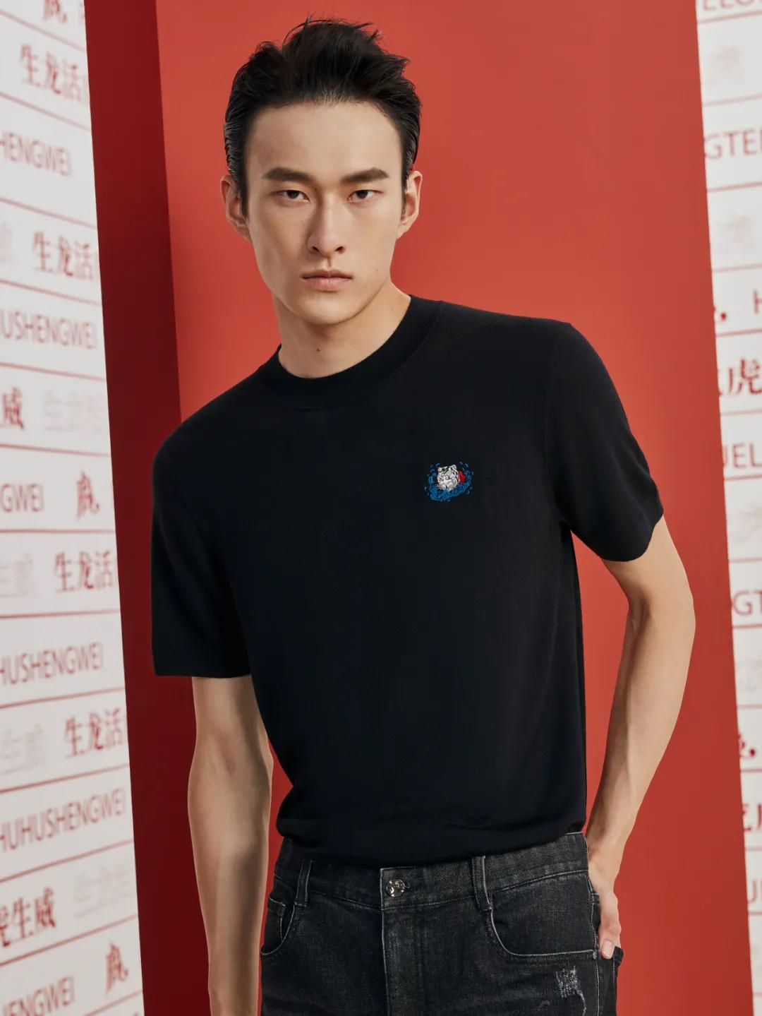 由28款产品组成的虎年联名胶囊系列包含茄克、卫衣、毛衫和衬衫等多种成衣品类,在水蓝色、珊瑚粉与古铜金色等鲜活色彩中融汇劲霸男装的高端工艺。滴水兽虎作为该系列的灵感主角,通过多元化设计手法贯穿全系列,运用重工刺绣与立体提花灵动呈现:雕琢传统,立足未来。