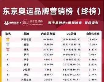 另据懒熊体育和数字品牌榜联合发布的《东京奥运会品牌营销榜》显示,安踏仅次于阿里巴巴,排名全行业第二,运动品牌中第一。