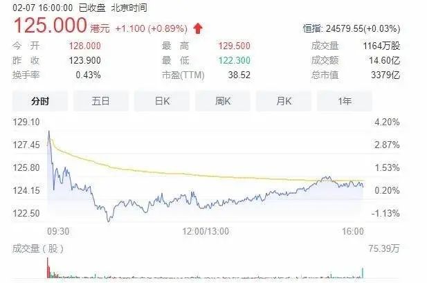 截至2022年2月7日收盘,安踏报收125港元/股,与上年190港元/股的最 高点,足足跌去了近35%,市值蒸发逾1600亿港元……