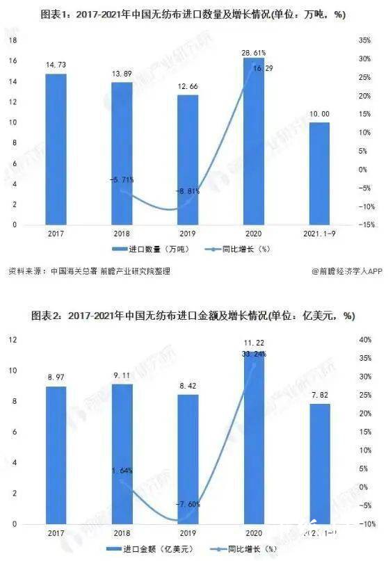 ,同比增长33.24%。2021年1-9月,中国无纺布进口数量为10万吨,进口额达到7.82亿美