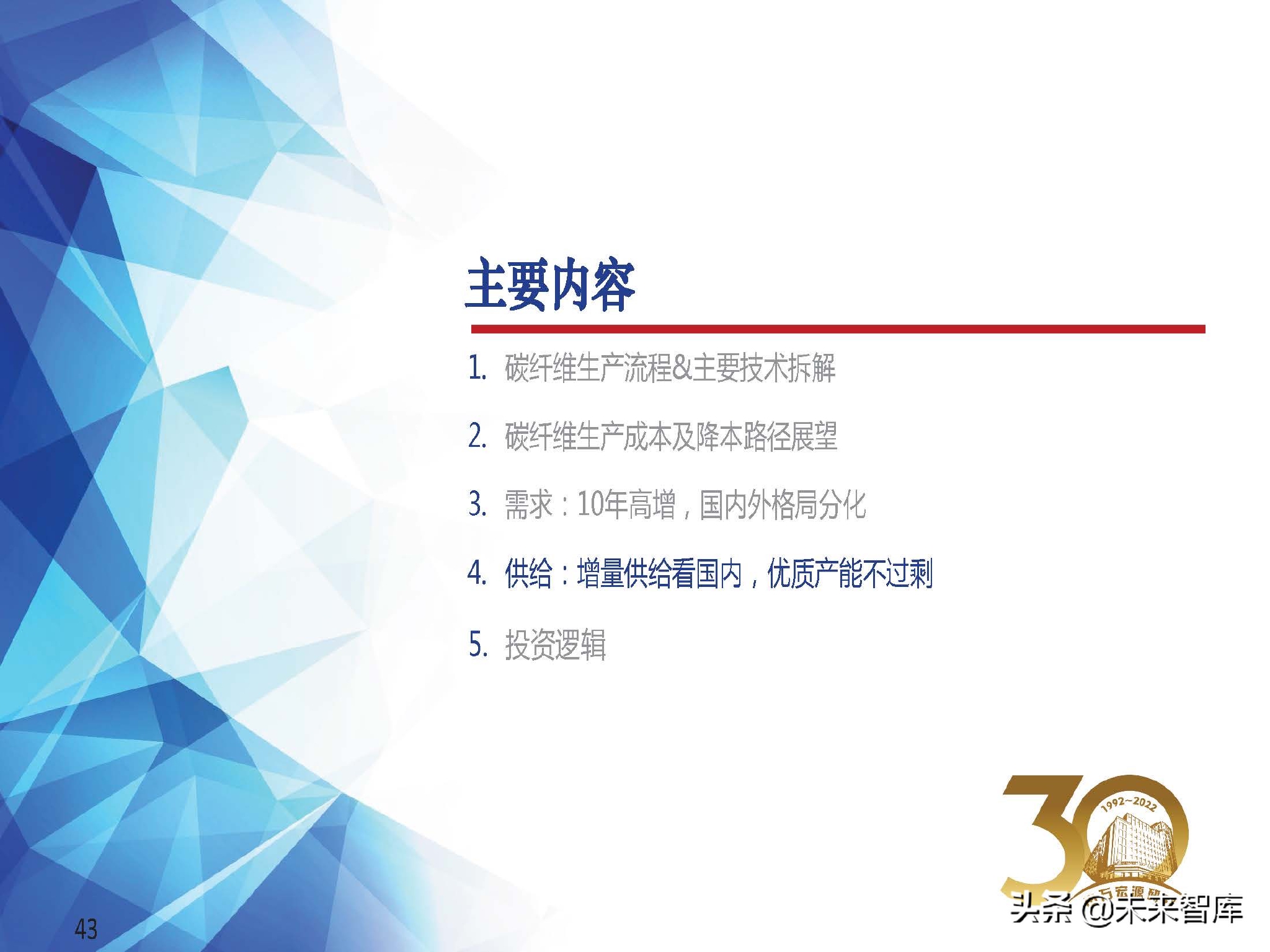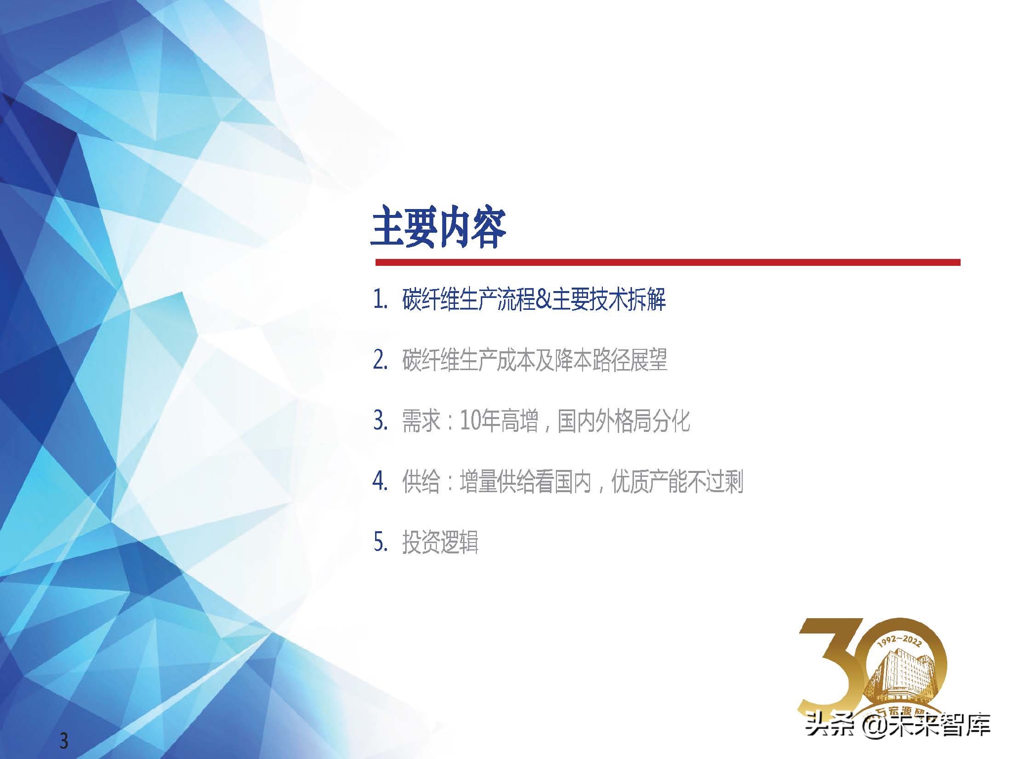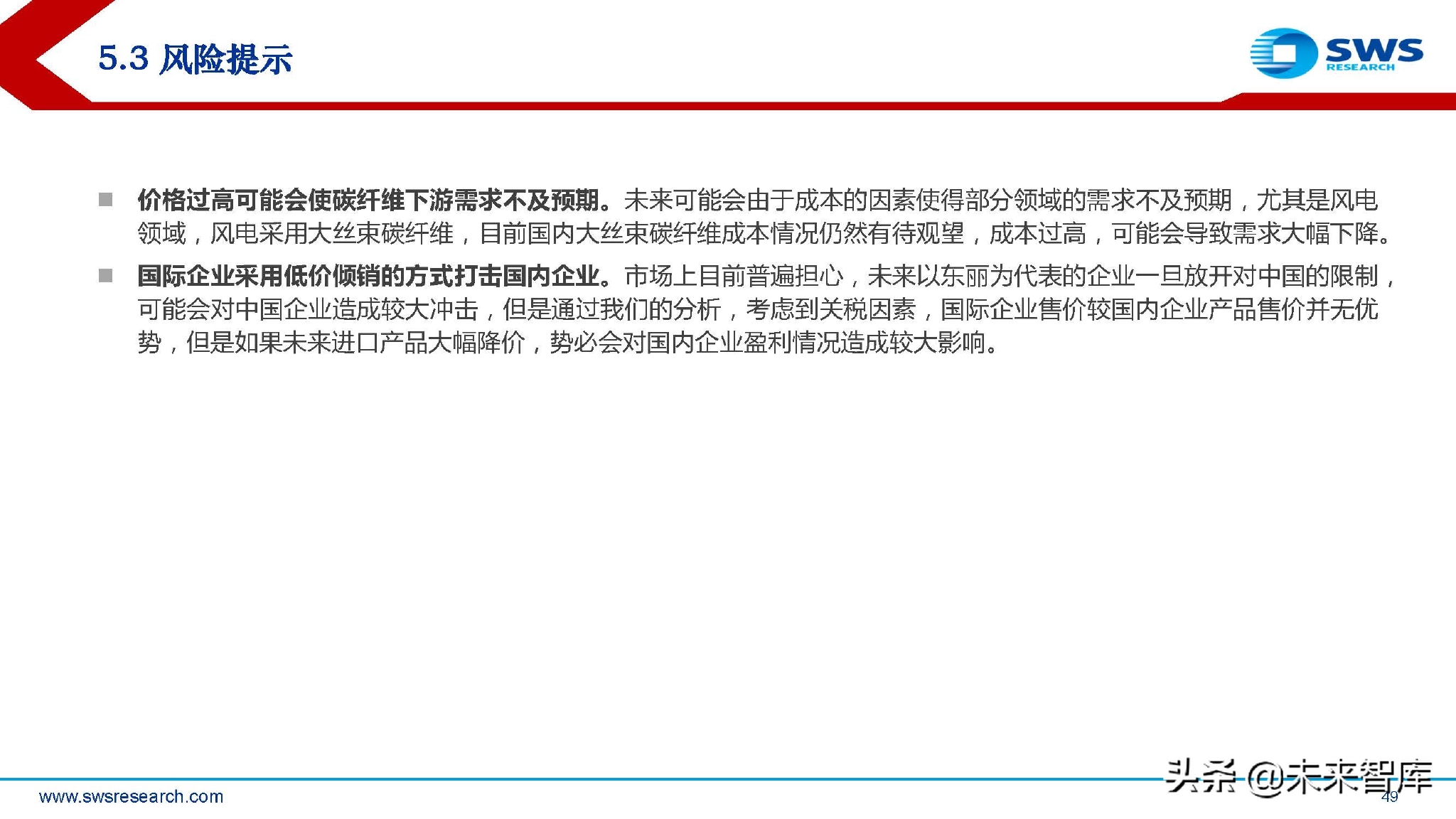 从需求角度来看,我们认为碳纤维行业景气度高,但不必过于担心新竞争者的进入,由于技术壁垒与资金壁垒的原因会使得部分新进入者的规划产能可能不及 预期,对行业的竞争格局影响有限,景气度态势仍将持续,中长期增长逻辑清晰,双碳带动碳纤维需求爆发;(报告来源:未来智库)