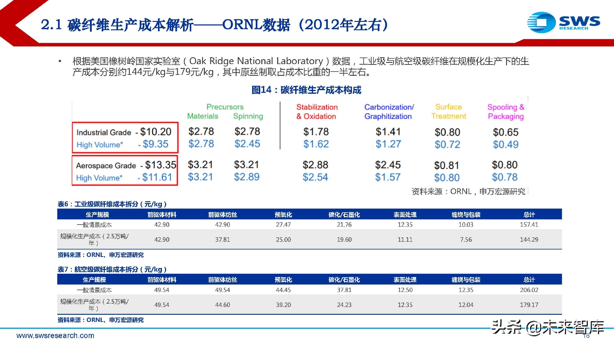 2.1 碳纤维生产成本解析——ORNL数据(2012年左右)