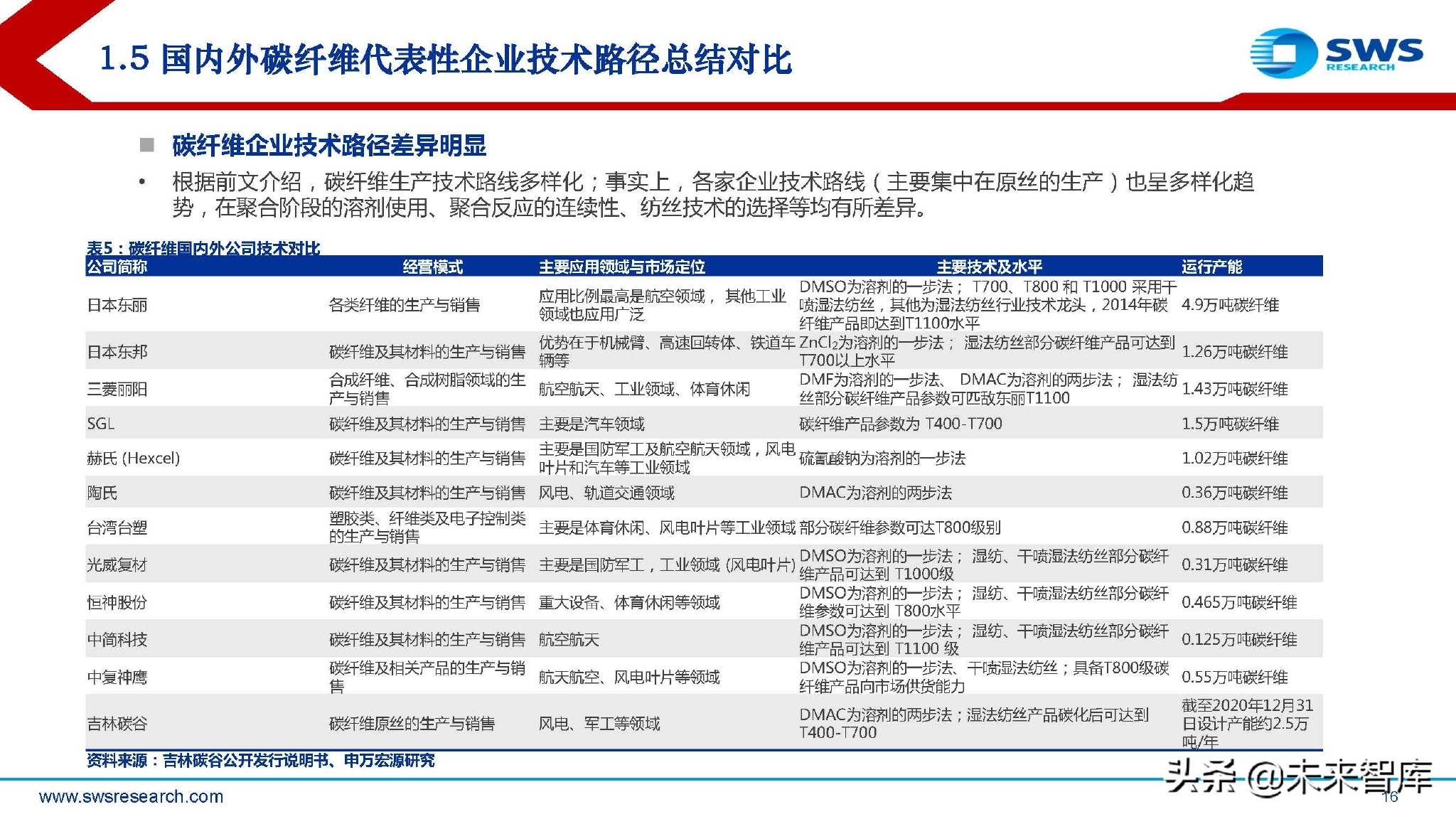 从企业技术路径的角度来看,各家企业的技术路径不一,当下碳纤维行业严重供不应求的情况下,技术路径的差异并不会对企业带来重大影响,但是在未来行 业竞争激烈的情况下,各家企业比拼的是成本和产品质量,关键就是工艺的成熟度,国内企业的成本目前已经足以和国际企业匹敌,即使未来进口放开,国内 企业完全具备竞争能力;