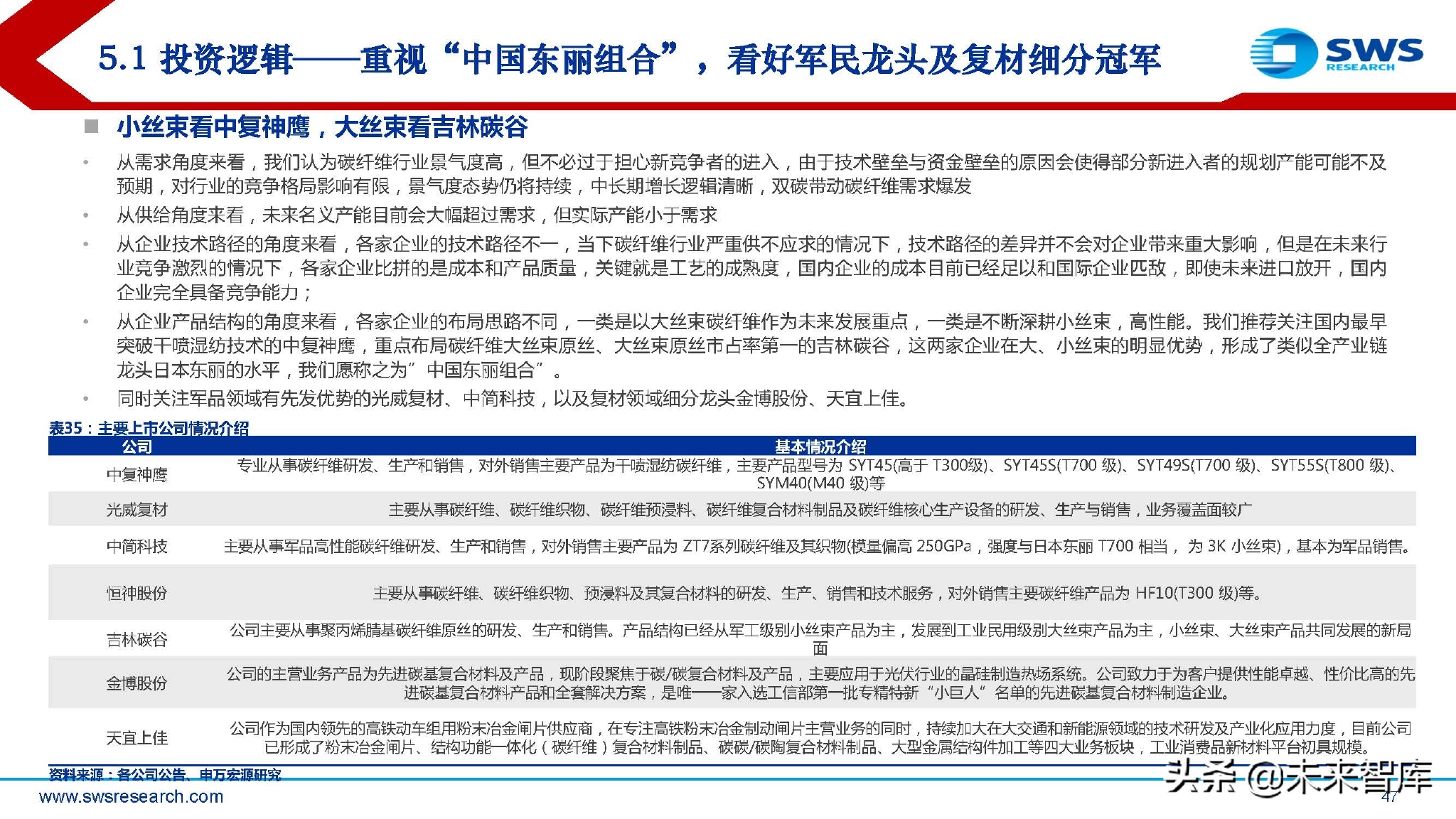5. 投资逻辑:重视“中国东丽组合”,看好军民龙头及复材细分冠军