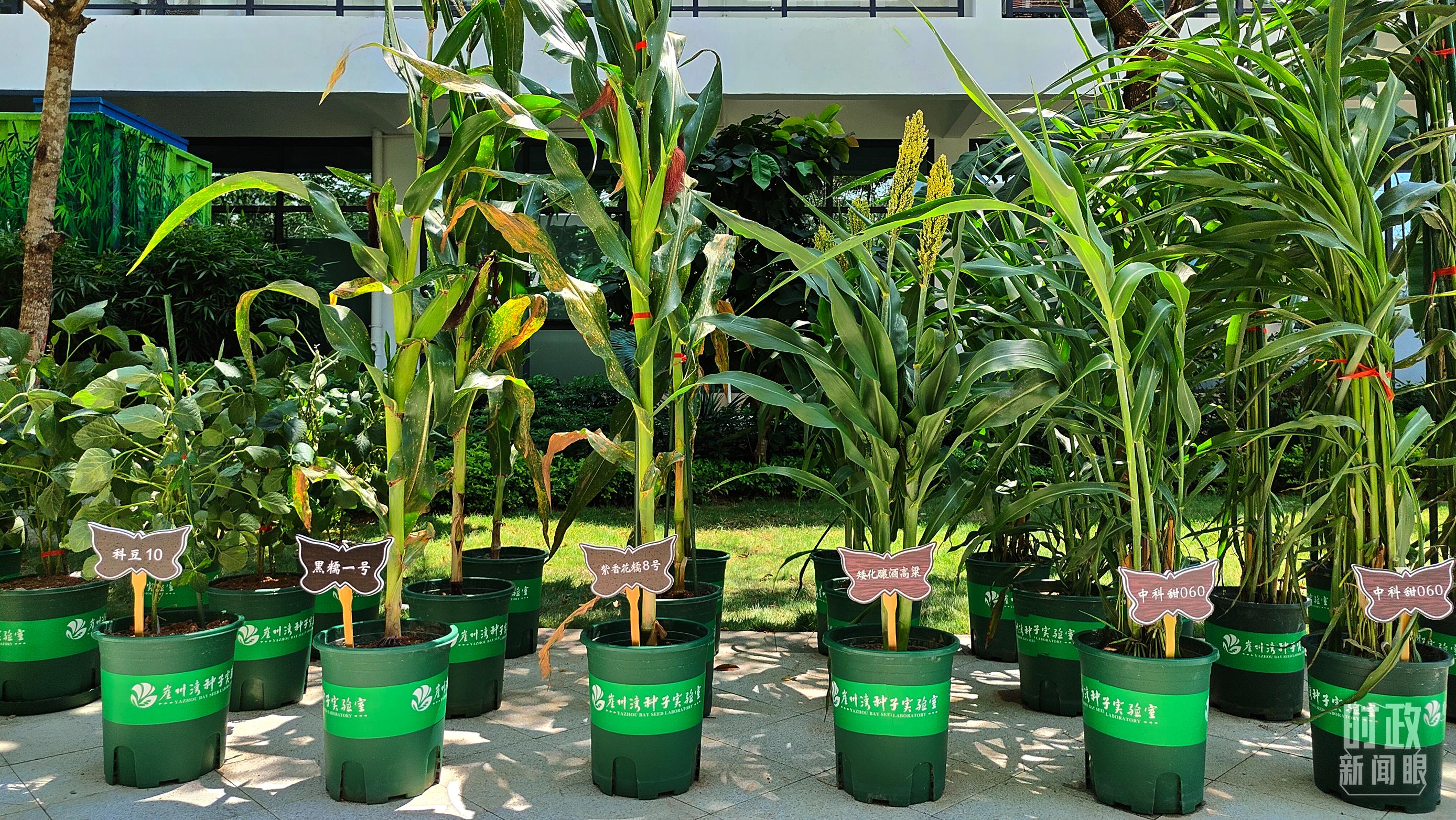 种子实验室展示黑糯一号玉米(左二)、矮化酿酒高粱(左四)等。(总台央视记者杨立峰拍摄)