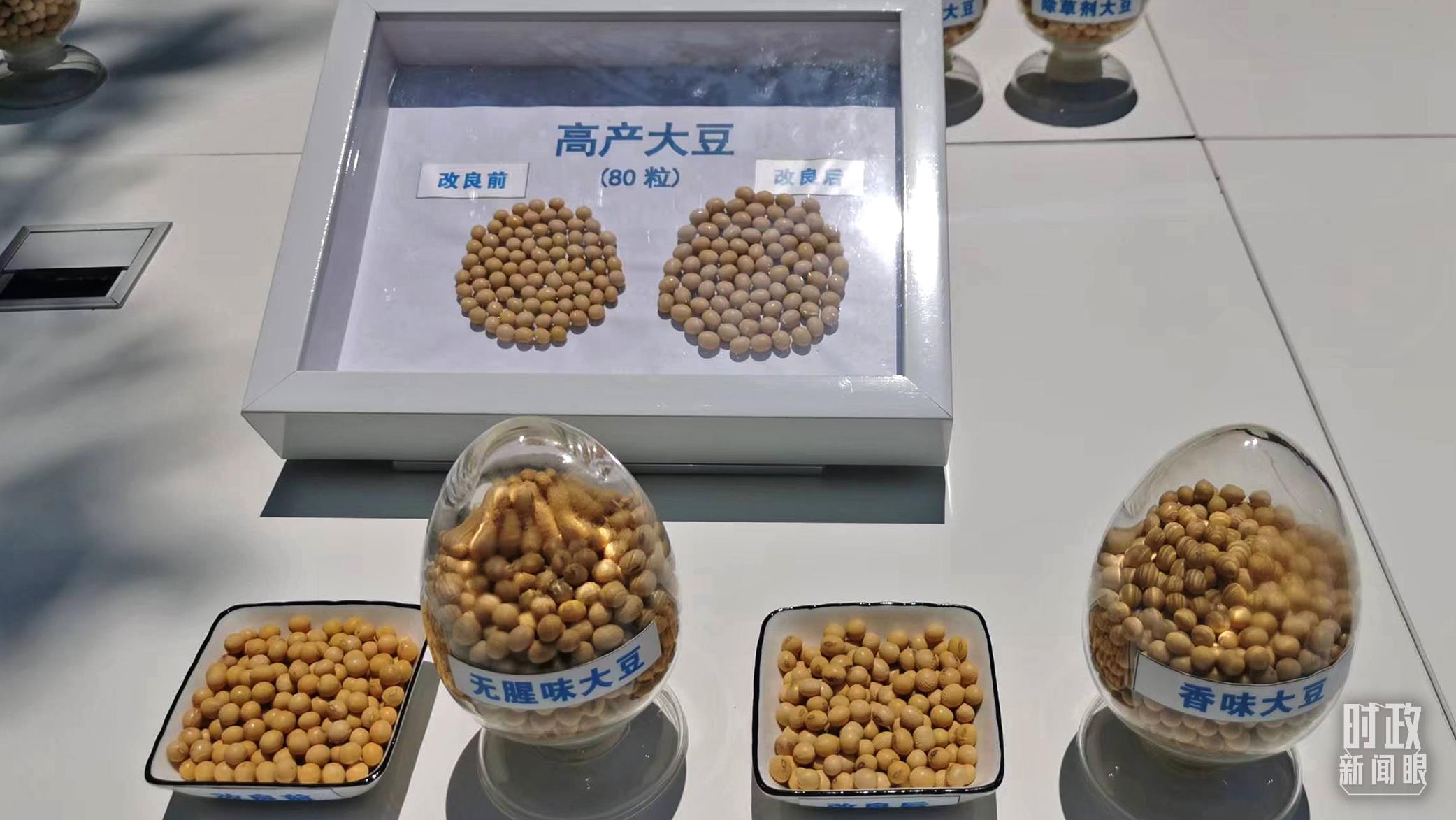 种子实验室展示改良前后的大豆样品。(总台央视记者钟锐拍摄)