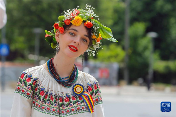 当日,布加勒斯特举行民族服装日活动,参加活动的人们身着不同民族服饰,展示罗马尼亚各个地区特有传统服饰。