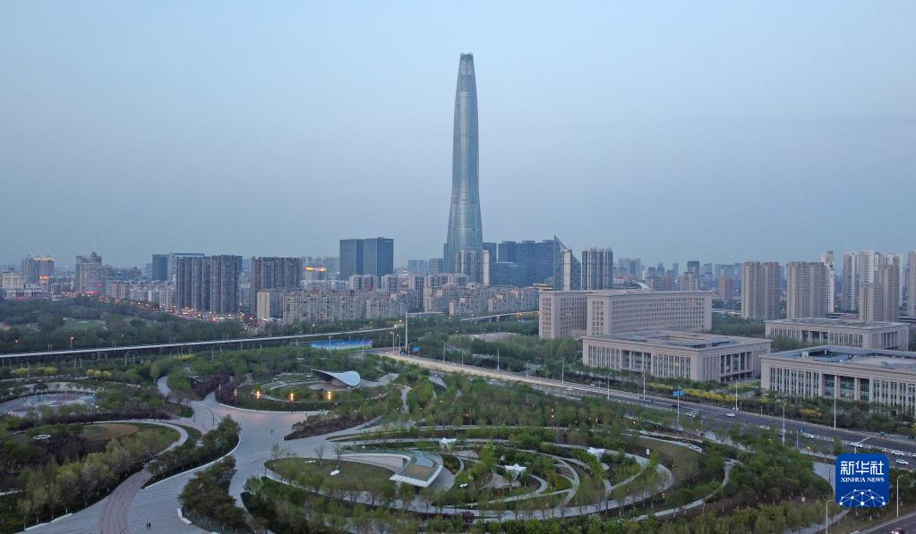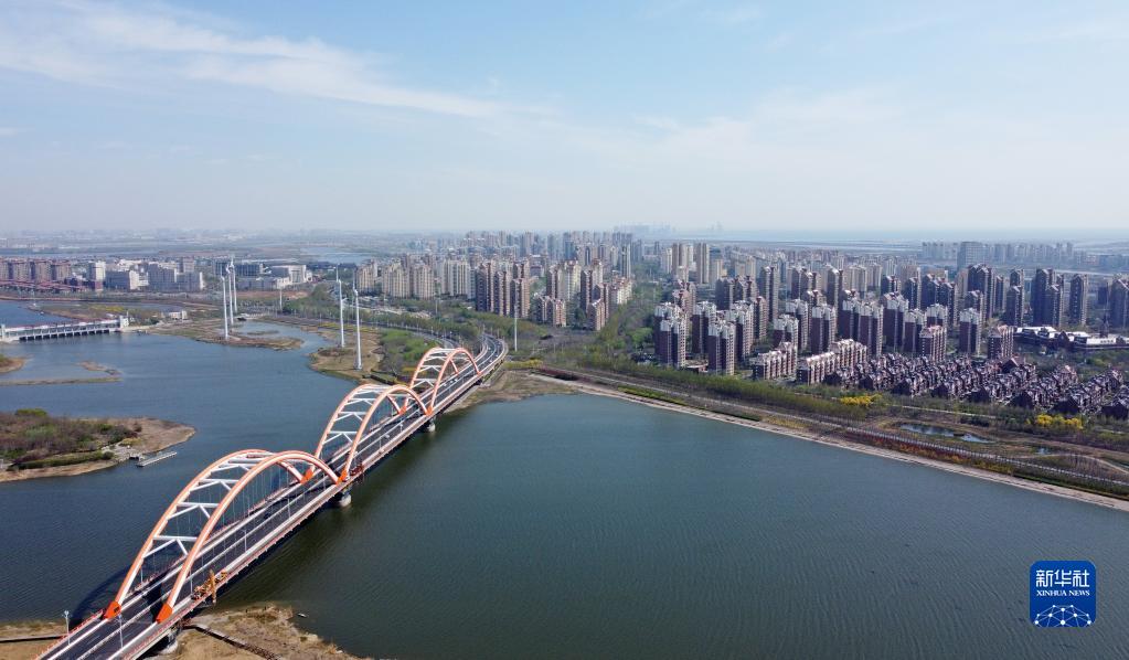 这是4月14日拍摄的中新天津生态城新貌(无人机照片)。新华社记者 赵子硕 摄