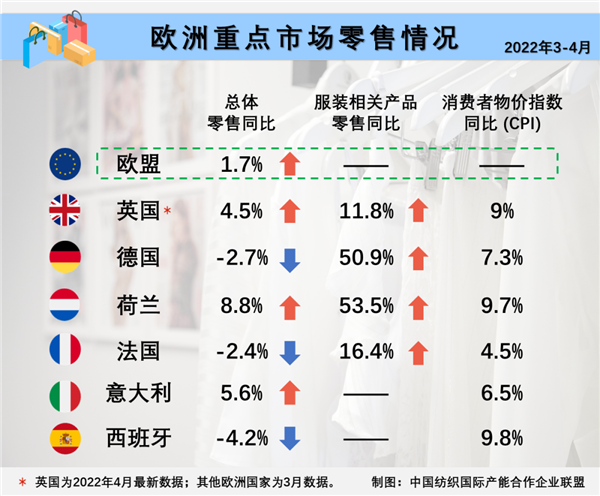 从各国官方数据看,3至4月全球各主要零售市场虽普遍实现平稳增长,但高通胀或将导致各国消费者的实际购买力出现下降。