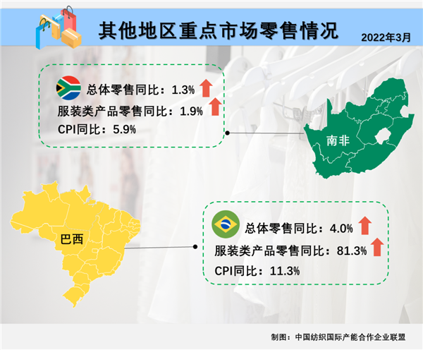 土耳其3月纺织品、服装和鞋类零售额同比上升15.8%,但其3月CPI已上涨至61.1%高位,通胀压力仍在增加。