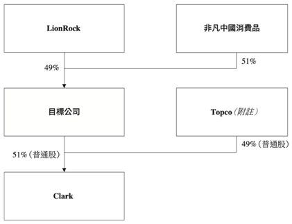 收购完成后,非凡中国将和莱恩资本共同持有一家公司,间接持有Clark集团51%的普通股,成为仅次于Topco的第二大股东;Clarks将成为非凡中国间接非全资附属公司,品牌业绩也将综合入账至非凡中国财务报表。