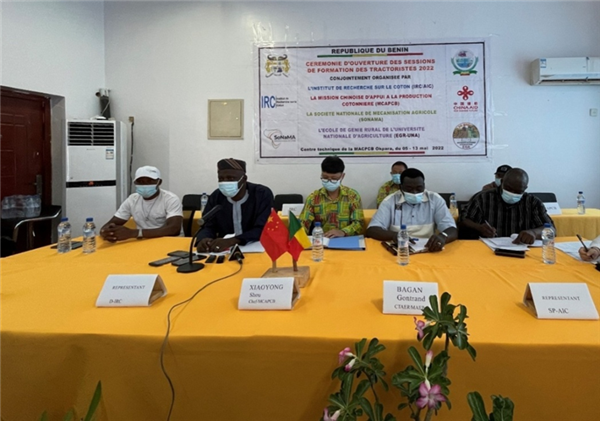 中国援贝宁棉花技术援助项目自2013年开始实施至今已进行到第三期,项目通过开展棉花良种选育、种植技术示范、农机技术培训等工作,为促进贝宁棉花生产提质升级、帮助农民脱贫致富作出了积极贡献。贝宁上一棉季产量高达80万吨,连续三年在非洲名列前茅。为帮助培训贝方人员、授人以渔,近日,2022年度中贝棉花农机技术培训班在贝宁帕拉库市成功举办。本次培训由中国援贝宁棉花技术援助项目组联合贝宁农牧渔业部、棉花研究院、棉花协会以及农业机械化署共同举办,通过理论和实践相结合的方式教授拖拉机驾驶和维修维护、机械化种植等技术,助力贝宁提高农业机械化水平,共35名学员参训。