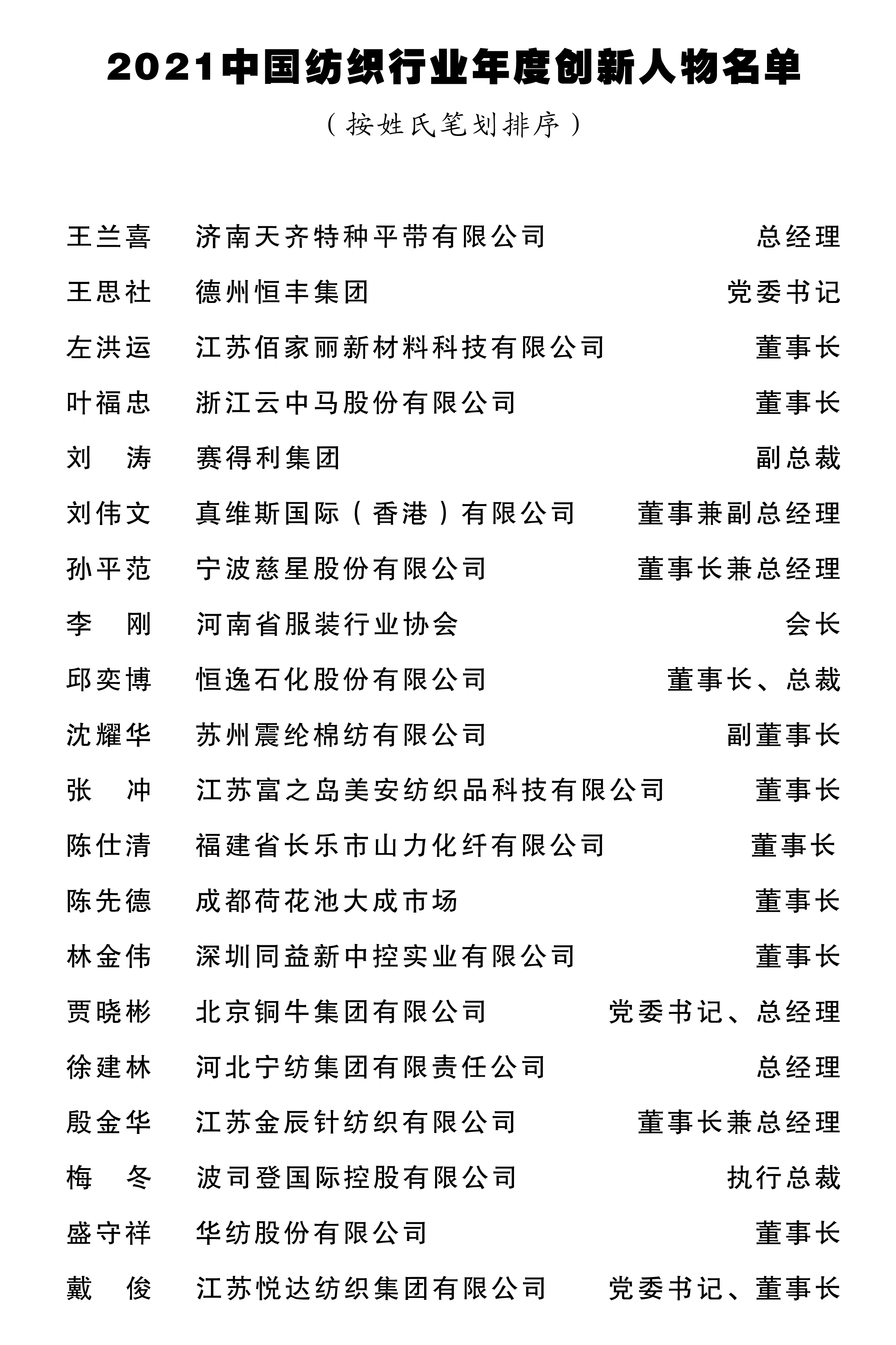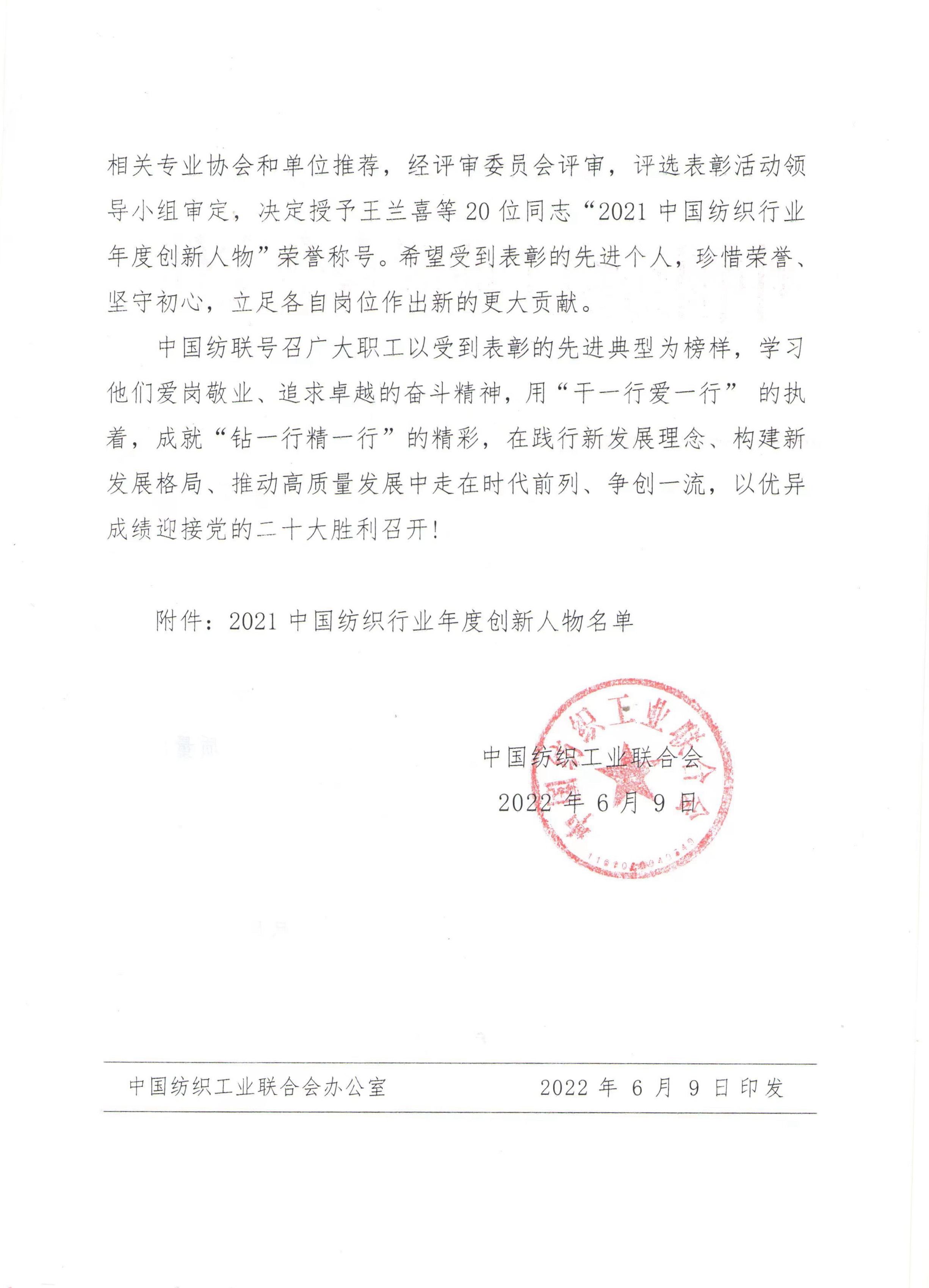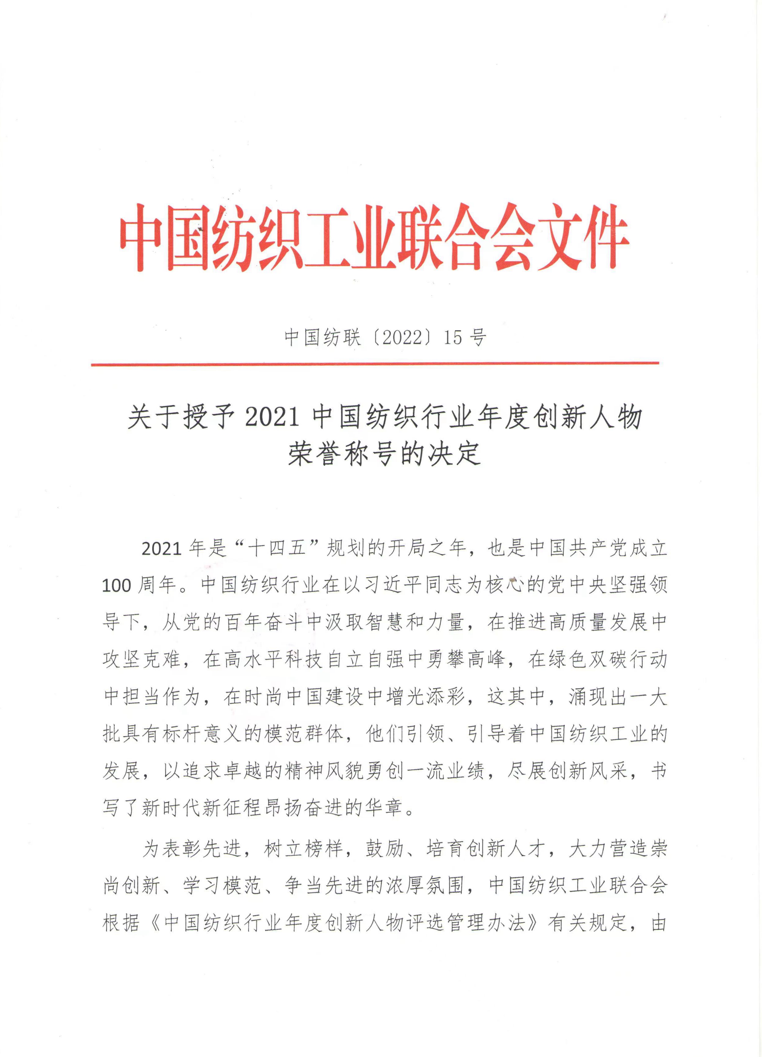 2021中国纺织行业年度创新人物名单