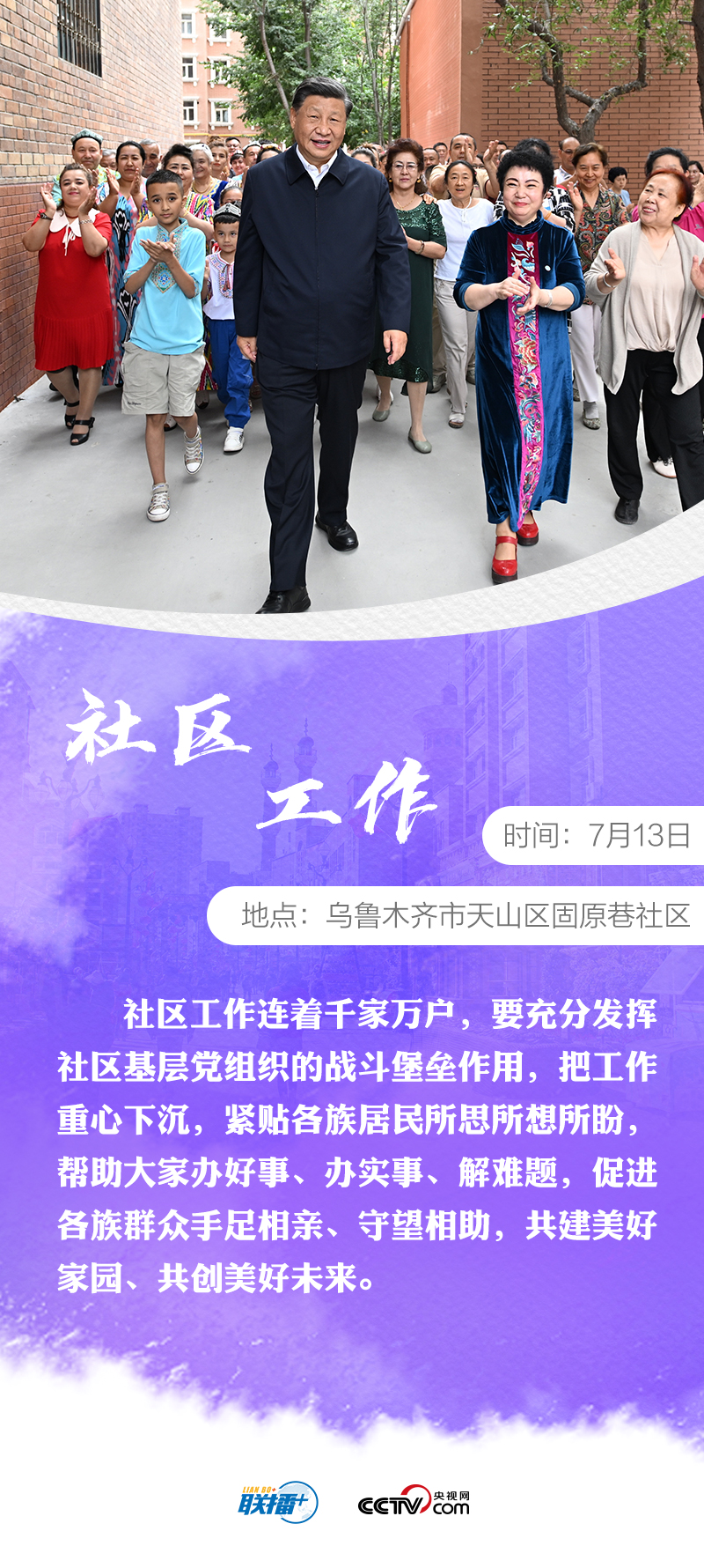 7月12日至15日,习近平总书记时隔八年再次考察新疆。他先后来到乌鲁木齐、石河子、吐鲁番等地,深入学校、国际陆港区、社区、博物馆、农村和新疆生产建设兵团等进行调研。