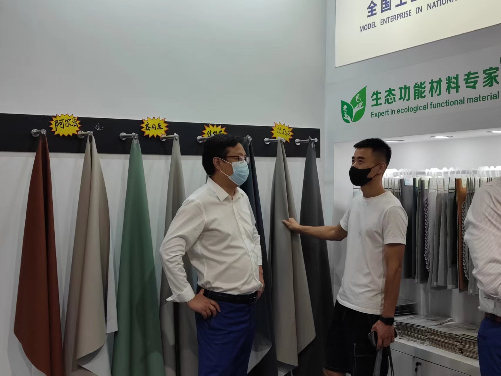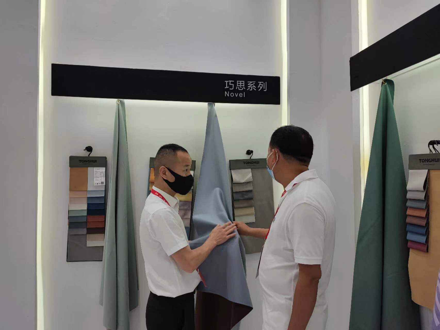 浙江同辉纺织股份有限公司此次带来了多个系列的产品,公司销售部沈孝锋向记者介绍了公司的参展情况。他表示,每年都会根据市场需求进行新品研发,此次参展,公司带来了针对国内外市场需求的科技绒、科技皮等多款产品,包括大师系列、科技+系列、巧思系列、超值系列等,其中不乏新一季研发的新款。