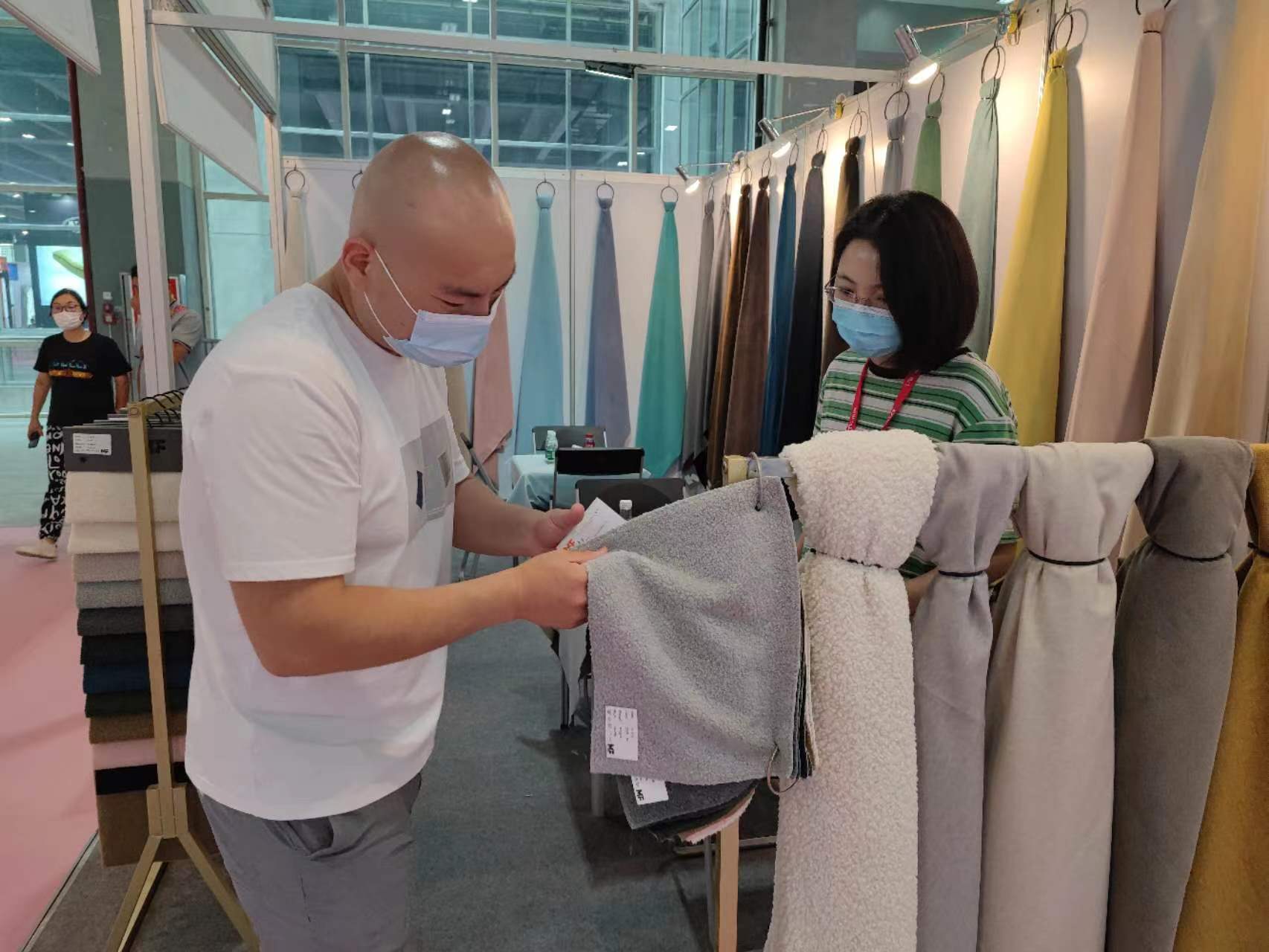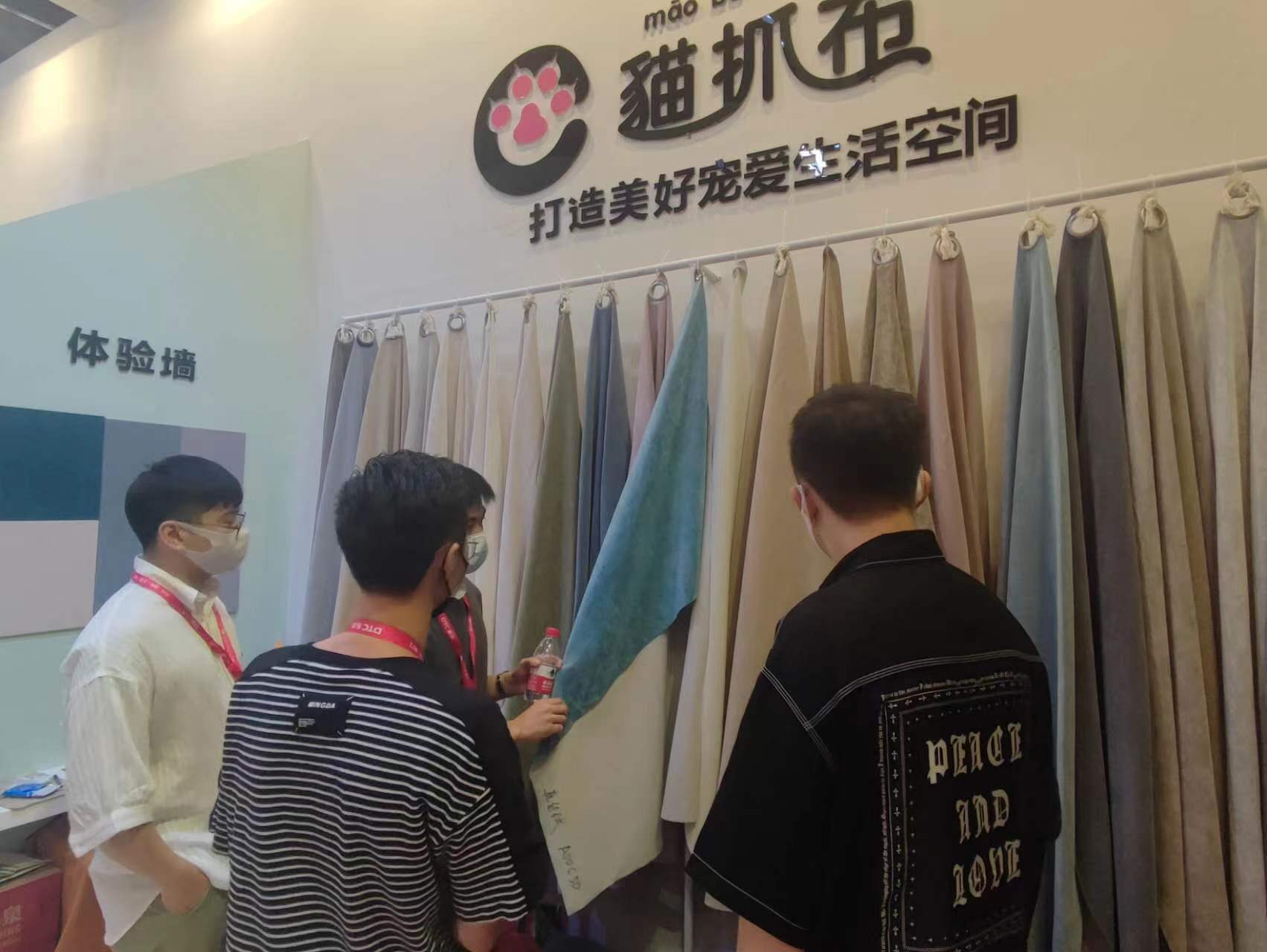 佛山市森柯道纺织品有限公司此次带来了土耳其的猫抓布品牌,吸引了不少客户前来咨询洽谈。公司总经理王翰然介绍,近两年业界就流行起一种称为猫抓皮、猫抓布的新型面料,顾名思义,就是能抵抗猫狗抓扯的面料,它既能做出皮料的细腻感,也能做出布艺的粗糙感。