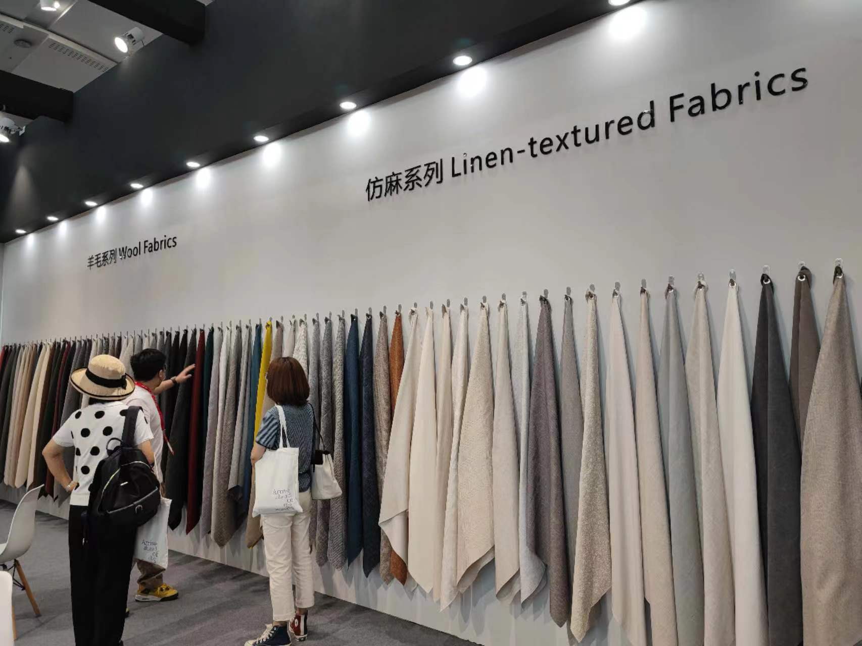 在展位上刚刚接待完一位意向客户的杭州天绵纺织有限公司钱骏向记者介绍,客户想定制一批自然居家风格的汽车内饰面料,对于面料的耐高温、防污、防水、耐磨等特性要求高,还需要进一步沟通。今年公司带来了旗下品牌的三大系列产品,包括:混纺系列、仿麻系列、羊毛系列,主打自然、天然风格,价格区间在20元/米-100元/米。