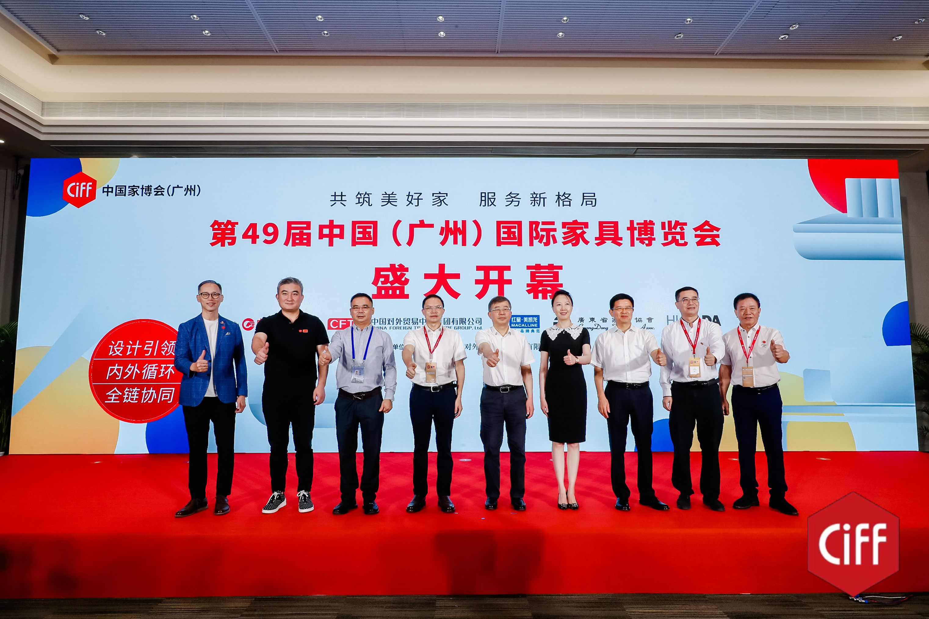 展会首日,中国对外贸易中心党委书记、主任,中国对外贸易中心集团有限公司董事长、总裁储士家,中国家具协会副理事长兼秘书长屠祺,商务部驻广州特派员办事处副特派员谢莹,中国对外贸易中心副主任、中国对外贸易中心集团有限公司副总裁徐兵,广州市商务局副局长罗政、红星美凯龙家居集团执行总裁兼大营运中心总经理朱家桂、广东省家具协会会长王克、香港家私装饰厂商总会常务副主席邝锦明、联邦家私集团董事局主席杜泽桦共同启动第49届中国家博会(广州)开幕仪式。