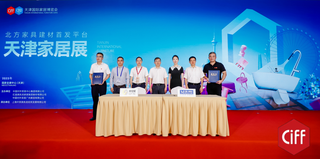 开幕式上还公布了重磅合作消息:中国对外贸易广州展览有限公司与红星美凯龙家居集团现场签署《天津国际家居博览会合作备忘录》,将于2023年在国家会展中心(天津)举办首届天津国际家居博览会。展会将紧扣北方会展业全新发展机遇,定位“北方家具建材首发平台”,致力于服务家居建材企业,深耕“三北区域”提升消费潜能,推动北方家居产业与区域经济高质量发展。