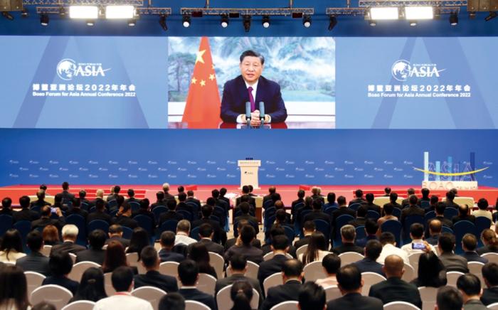 2022年4月21日,博鳌亚洲论坛2022年年会开幕式在海南博鳌举行,国家主席习近平以视频方式发表主旨演讲。年会上,与会嘉宾围绕数字经济、国际合作与全球治理等6项议题进行对话和交流,探讨推进全球经济可持续发展,数字经济成为关注焦点。图/新华社记者 丁海涛 摄