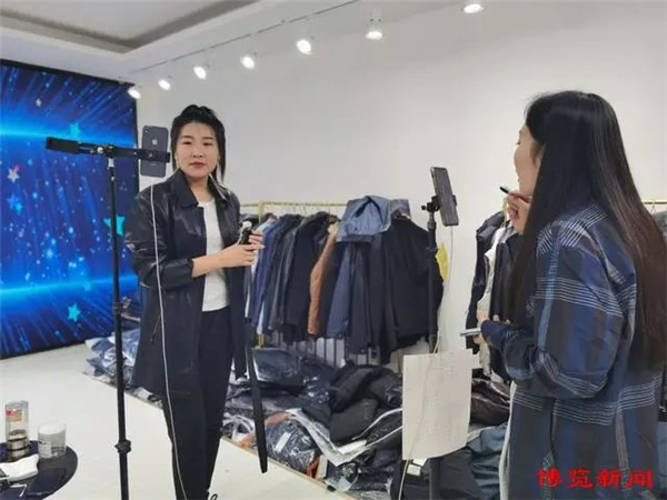 7月25日上午10点半,尚义路一家门头房二楼,不足30平方米的直播间里,两名靓丽的女主播,正在镜头前,向全国的“淘宝客”们介绍着店铺里的每一件“宝贝”。“旺季一天销售上千件,淡季销售在几百件,下午快递就上门来取件。”52岁的李阿姨动作娴熟地叠好棉衣放进快递包装袋,只等贴上发货单就可以出货了。这家名为招财树男装的店铺,拥有171.4万人关注,主要经营各类男装。店里6名主播,从早上8点到晚上10点轮流上线卖货。