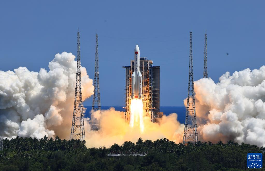 2022年7月24日,搭载问天实验舱的长征五号B遥三运载火箭,在我国文昌航天发射场点火发射。新华社记者 李刚 摄