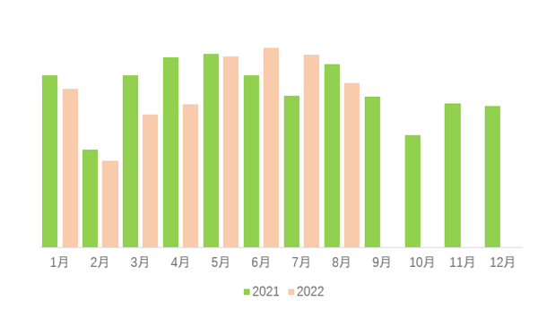 根据中国海关数据,2022年1~8月,毛纺原料与制品进出口总额累计110.7亿美元,同比下跌2%。8月单月进出口总额为18.2亿美元,环比下跌3.2%,近6个月内首次出现环比下跌,但月贸易额仍属于今年较高水平。