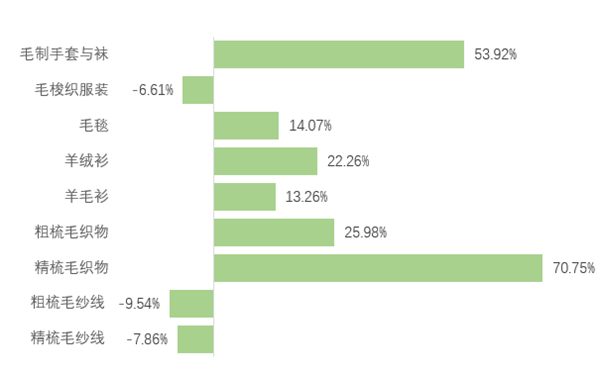1~8月,毛纺原料与制品出口额合计80.8亿美元,同比增长1.8%,进口额合计30亿美元,同比下跌10.9%。精梳毛织物依然是出口毛纺产品门类中增速最快的品类。