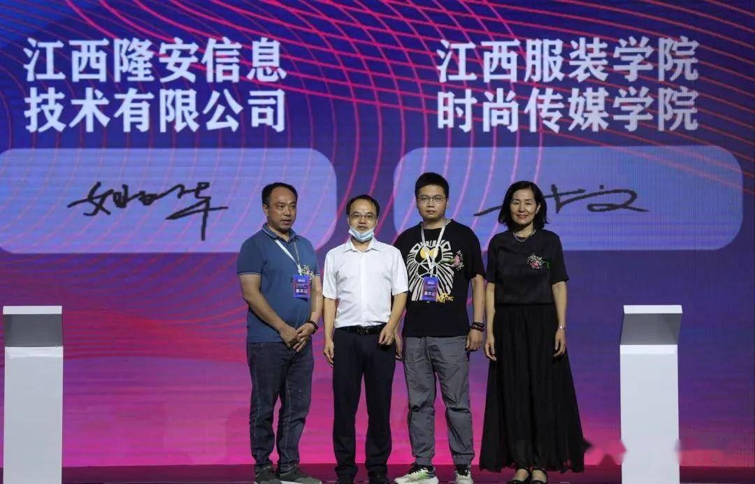 开幕式上,江西服装学院分别与石城县人民政府、吴江高新区(盛泽镇)人民政府、安阳中原高新技术产业开发区管委会、射阳县人力资源和社会保障局、浙江凌迪数字科技有限公司、海宁中国皮革城股份有限公司、苏州上久楷丝绸科技文化有限公司、广州市丹昱信息科技有限公司、江西配播科技有限公司、江西省众灿互动科技股份有限公司、江西隆安信息技术有限公司、江西半橙科技有限公司进行了政校、校企、院企合作签约仪式。