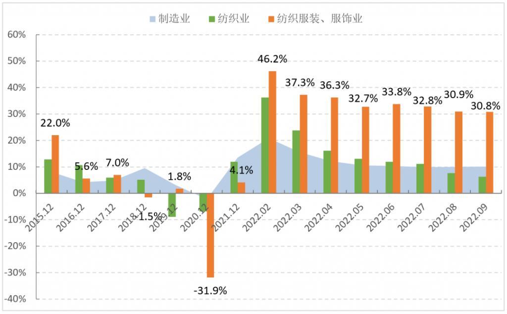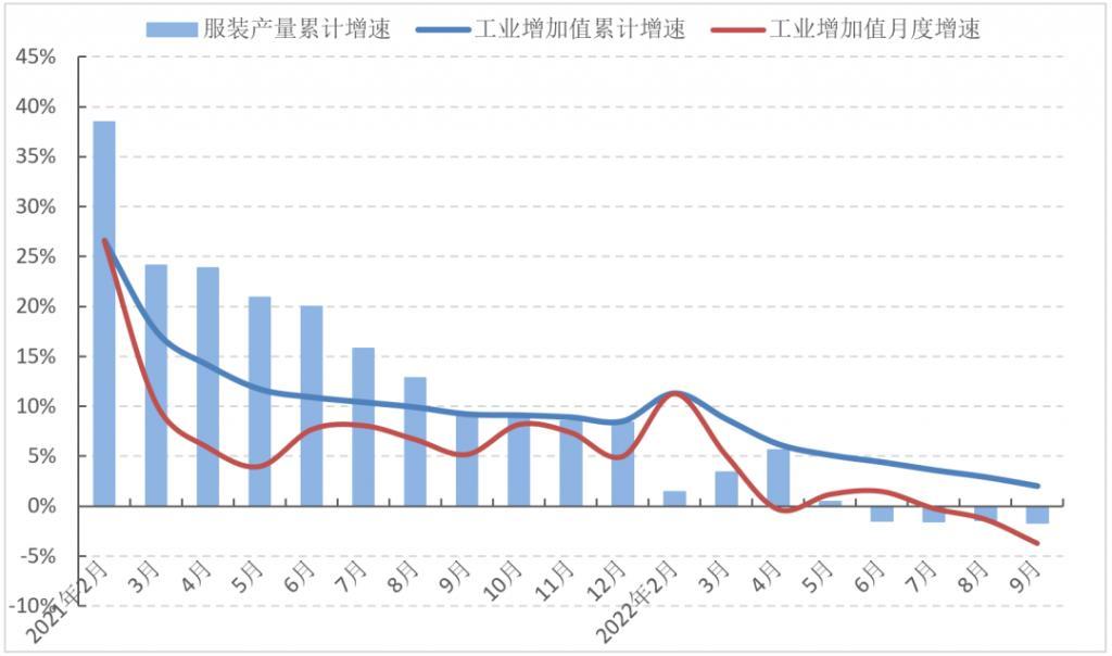 图1 2022年1-9月服装行业生产增速情况