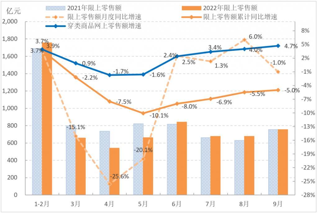 图2 2022年1-9月国内市场服装销售情况