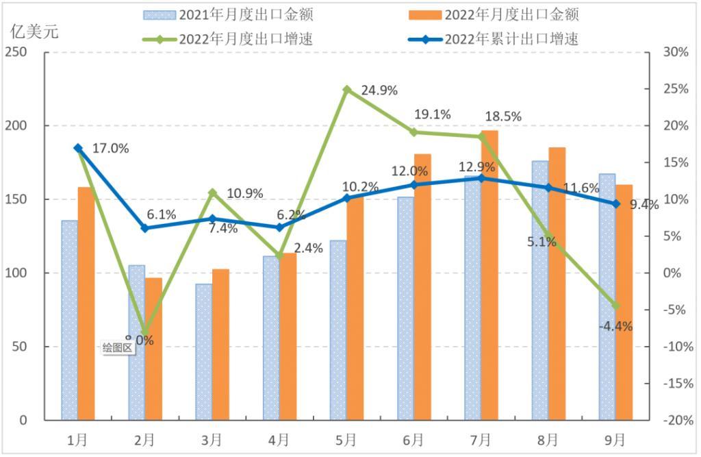 图3 2022年1-9月我国服装及衣着附件出口情况