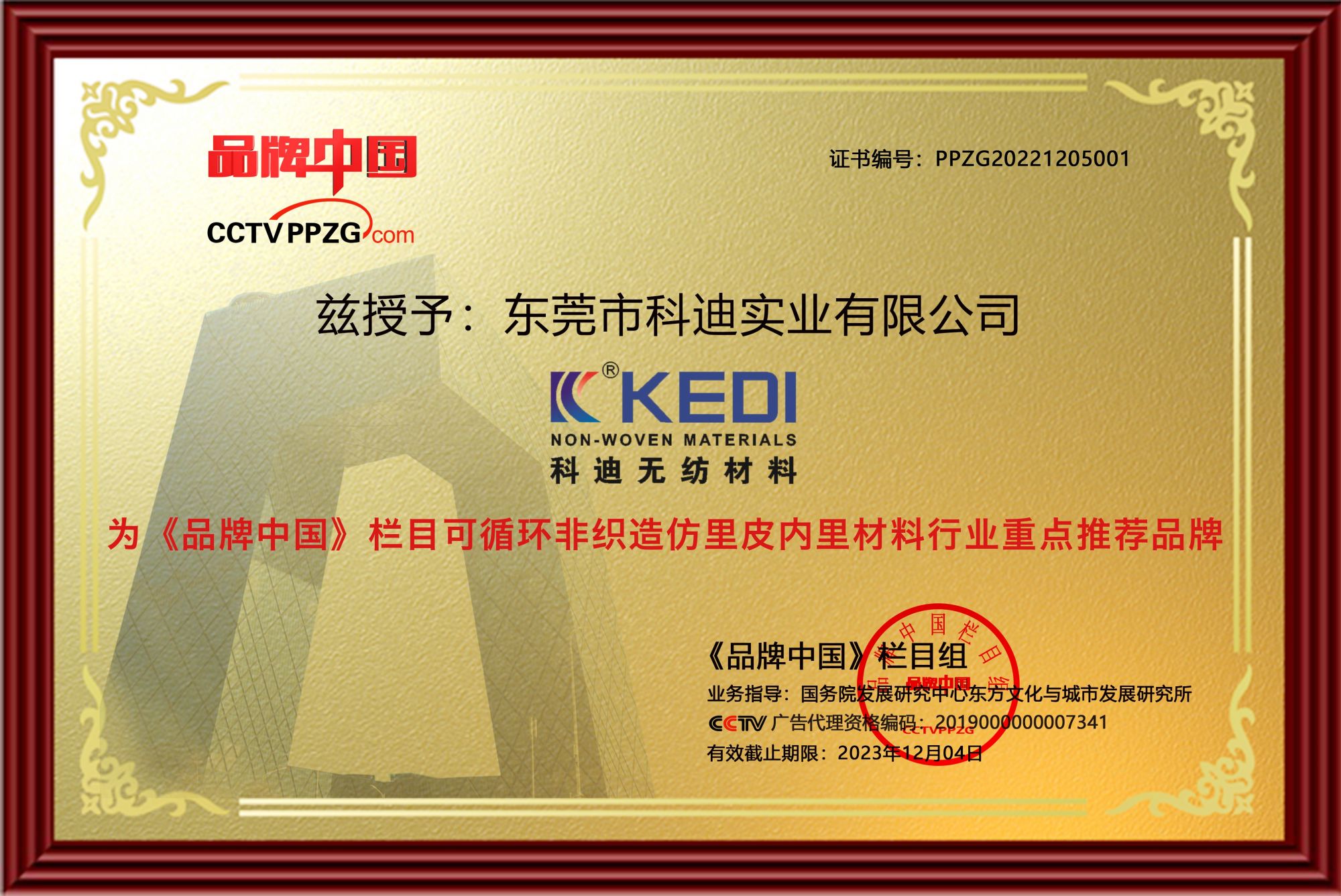 东莞市科迪实业有限公司(以下简称“科迪实业”),成立于2011年11月14日,是一家集研发、生产、销售为一体的非织造新材料企业,同时也是国家高新技术企业、创新型中小企业。公司专注于环保型非织造新材料、新产品的研发、生产和销售,主要为涤纶纤维仿皮、超细纤维、线束绝缘材料等非织造产品,产品先后通过了GB/T 19001-2016 / ISO 9001:2015质量管理体系,GB/T 24001-2004 / ISO 14001:2004环境管理体系认证,主要应用于高档手袋、箱包、鞋子、军工鞋服、新能源汽车内饰汽车座椅、方向、顶棚、环保超纤、汽车发动机电路包覆材料、手机及平板电脑表面接触保护材料等。公司相关核心技术申请发明专利14项,已获得实用新型专利授权44项,登记软件著作权6项。