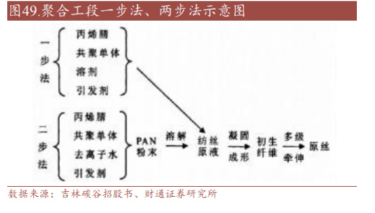 5.1 原丝生产:两步法可解决单聚合釜产能小问题,干喷湿纺将成高 性能碳纤维主流工艺