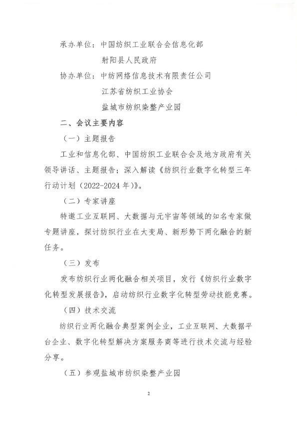 2022中国纺织行业两化融合大会定于射阳召开
