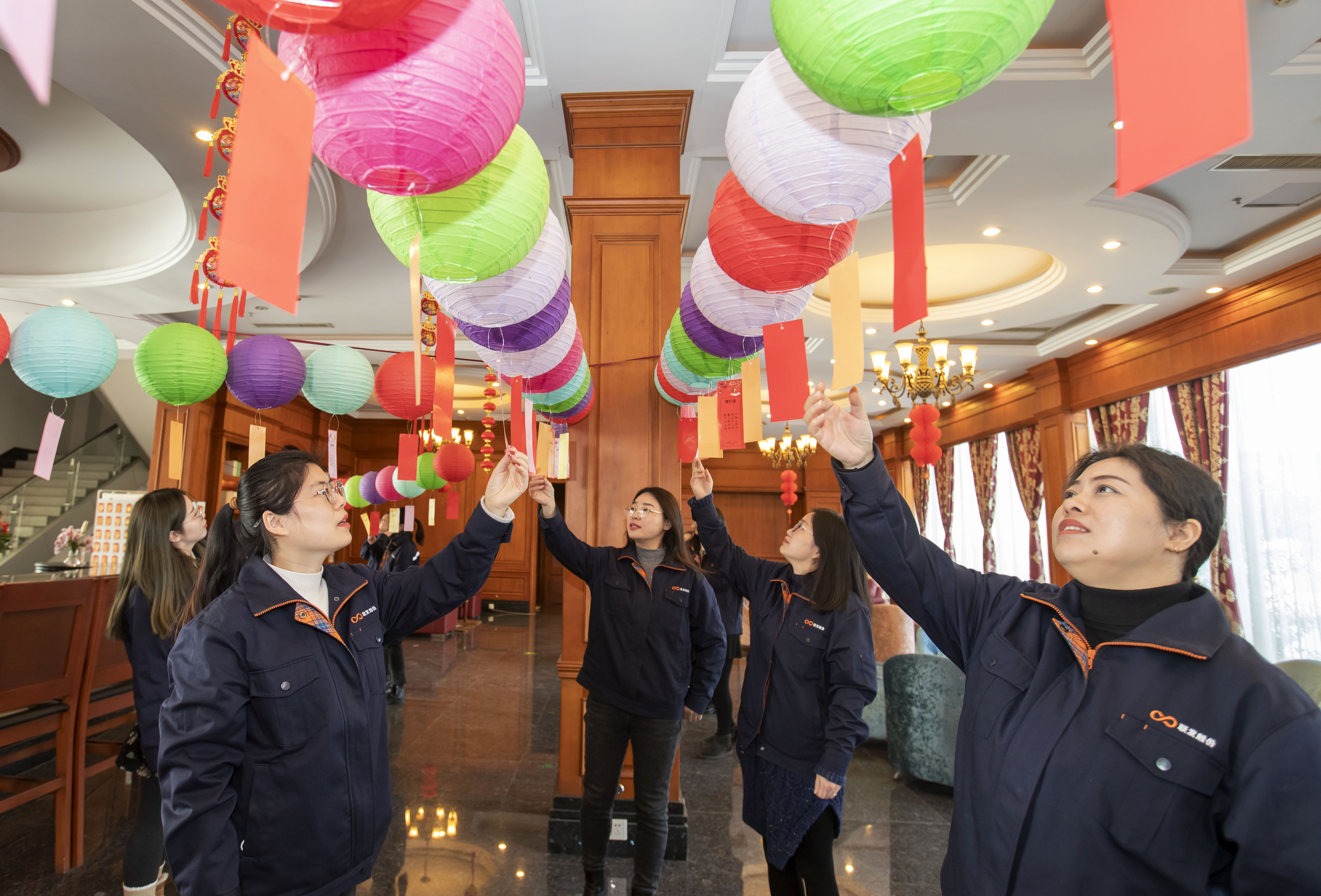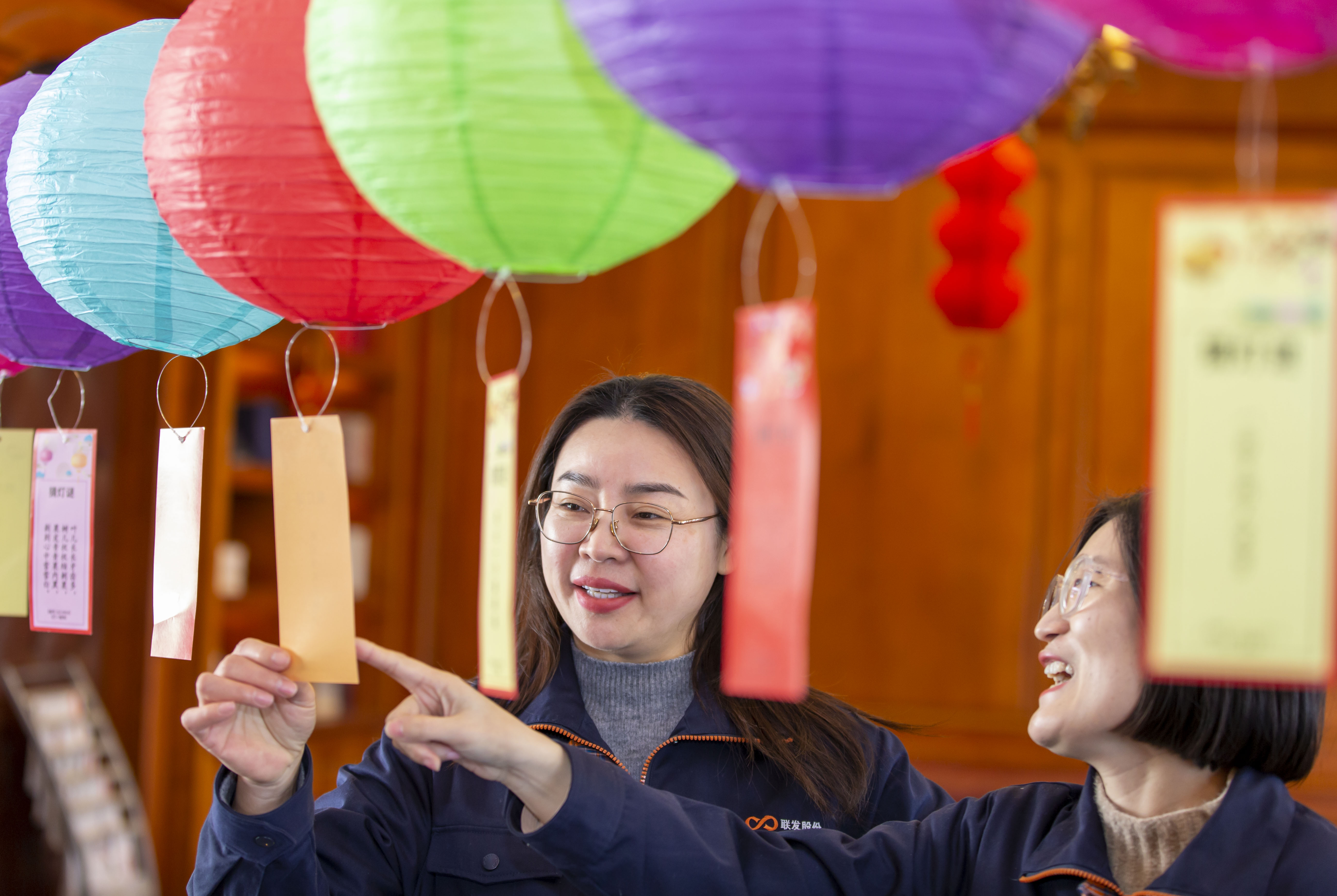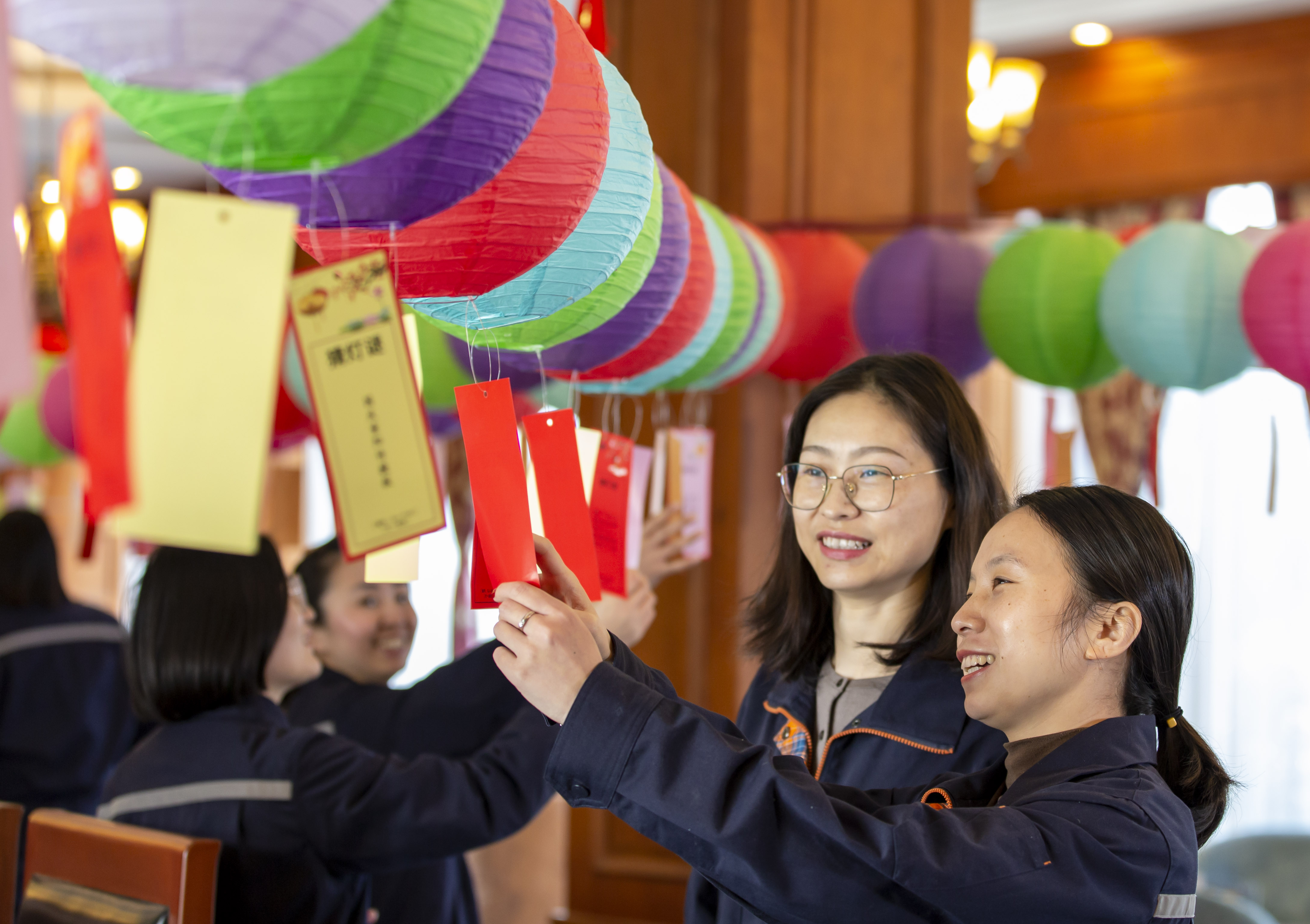 2月3日,元宵节将至,位于江苏省海安经济技术开发区的江苏联发纺织股份有限公司工会举办“猜灯谜闹元宵”活动,来自该公司的员工在喜庆的气氛中,猜灯谜,闹元宵。