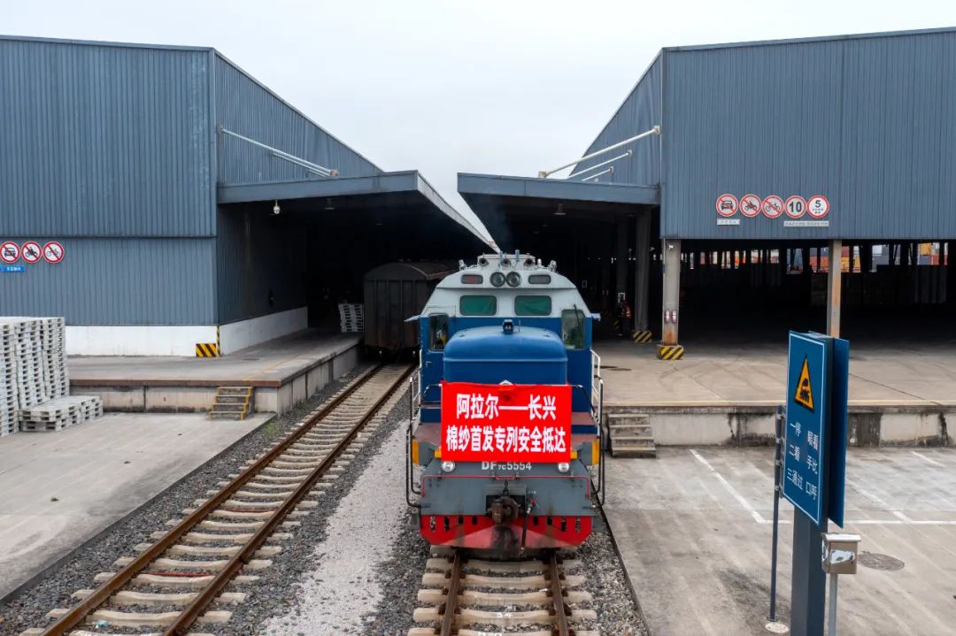 阿拉尔市是新疆棉花的重要产地之一,目前每年新疆运至长三角棉纱总量有200万吨。棉纱专列的运行,为新疆棉花产品的高效快捷运输开辟了新通道,长兴南站将进一步优化铁路装卸组织,为加快推进新疆棉花棉纱产业高质量发展助力。
