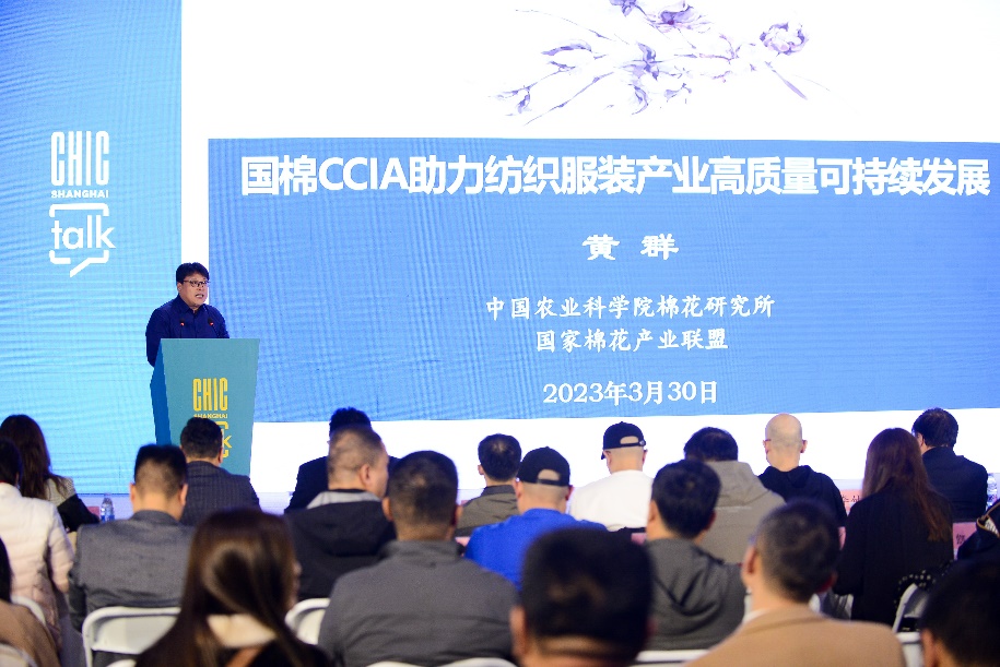 中国农科院棉花研究所处长、国棉联盟副秘书长黄群介绍了我国棉花产业现状,CCIA高品质可持续棉花及其理念,国棉CCIA助力纺织业发展创新模式等。他表示,“好品种+好技术”才能生产出好原棉,从原料源头上解决纺织服装行业痛点。在棉花生产端实施节能减排、低碳环保,提升经济、社会和环境效益,并在种植环节探明碳汇数据、开展溯源,赋能品牌可持续发展等。