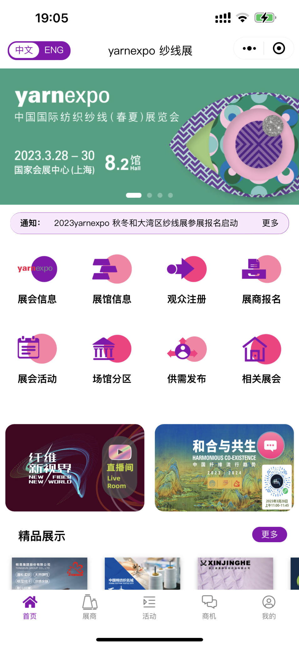 yarnexpo云展小程序提供保姆式逛展服务,交通指南、展馆分布、展商/产品推介一键指引,吸引超10000+观众上线,享受“云展”便捷服务。更有跨时间、跨地域展示、互动便利,展前逛展计划制定、心仪产品/展商提前搜罗、闭馆后线上供需要求发布……如此想你所想,难怪展会前后,还有无数人在小程序上活跃,彻底打破时空界限,让逛展更无界。