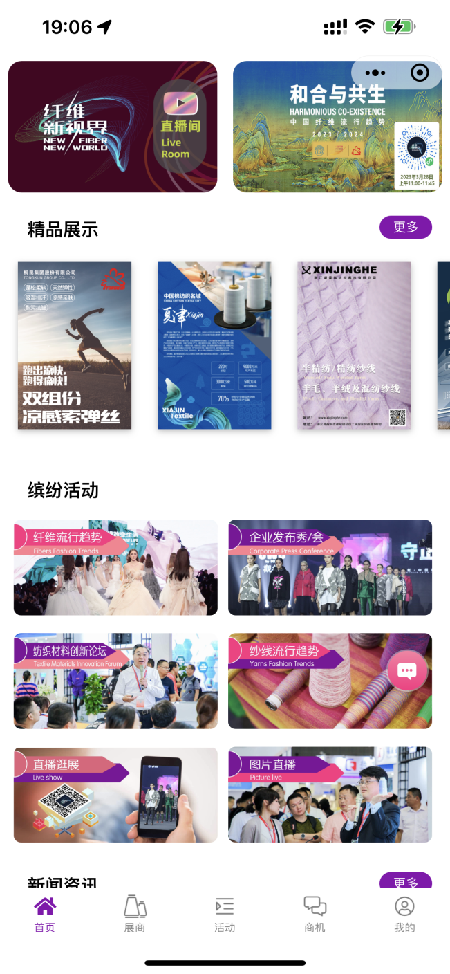 展会三天,yarnexpo官方图片、视频直播活动通过yarnexpo纱线展官方云展小程序以及yarnexpo纱线展微信公众号、微信视频号推送展会现场40余场专业活动;yarnexpo纱线展微信视频号展期三天每天更新现场小视频,为大家呈现现场精彩瞬间,收获总观看量超60000人次。