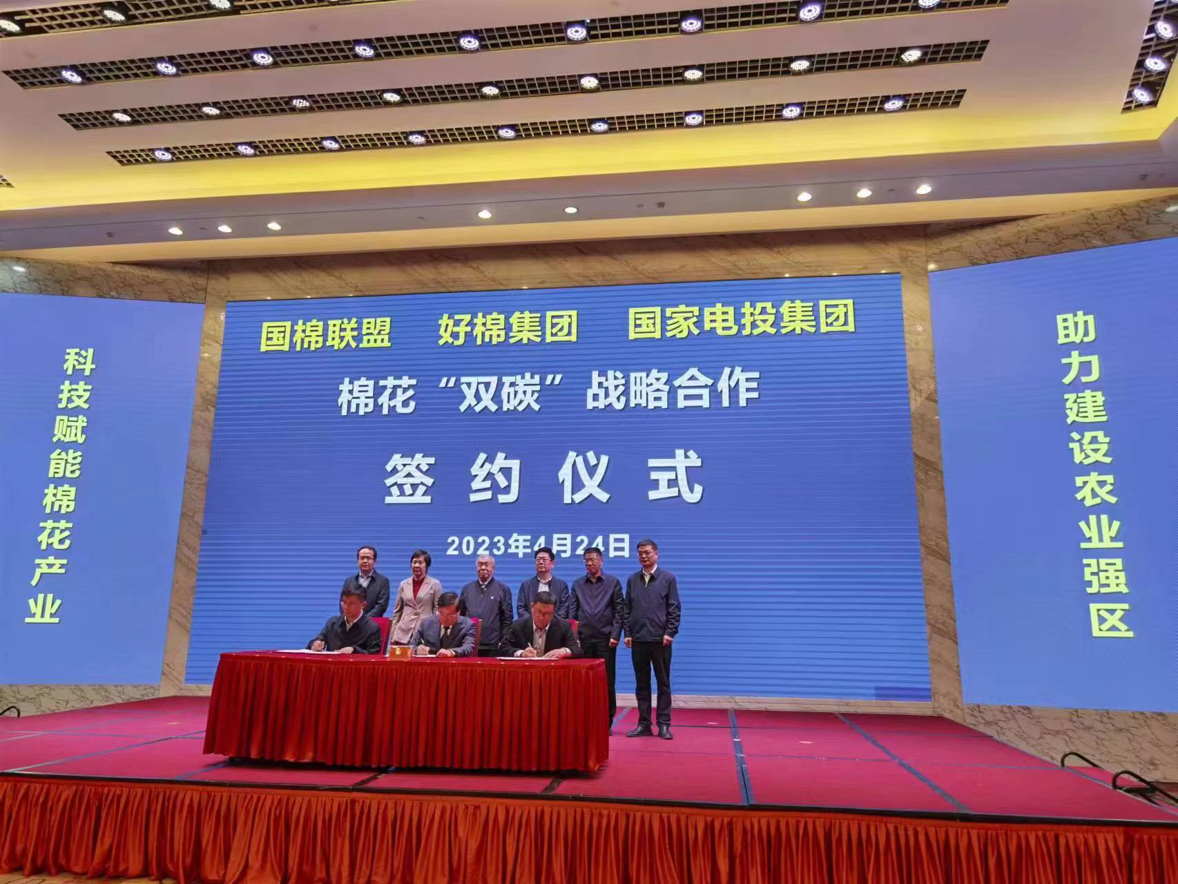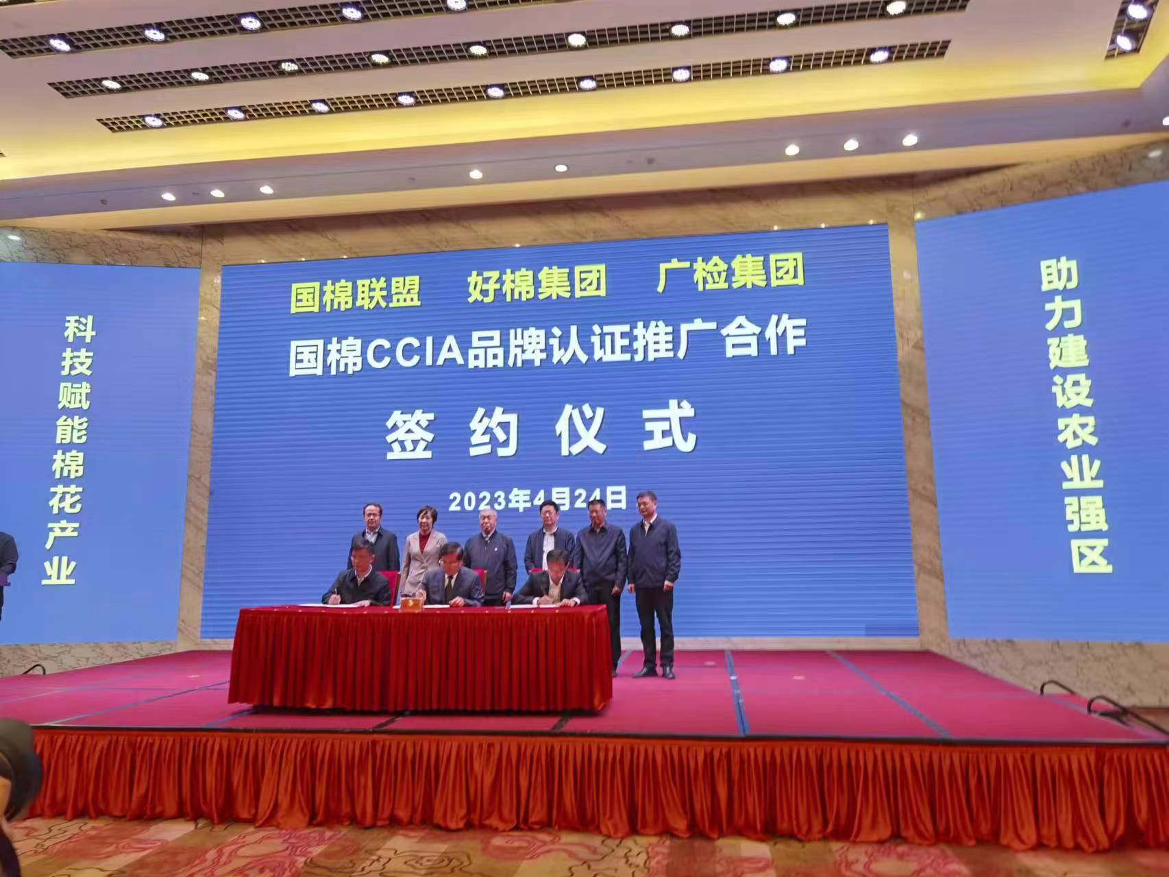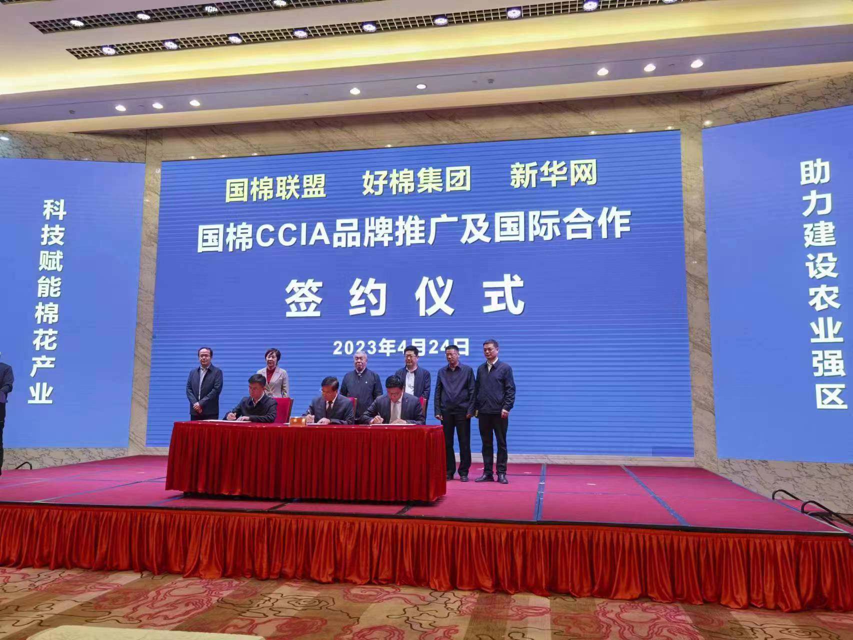 为进一步发挥国家棉花产业联盟引领推动中国棉花产业高质量发展的作用,加强国家棉花“CCIA”品牌及其标准、产品等的认证、推广和国际化,会上,国家棉花产业联盟及其实体化运营平台海南好棉科技集团有限公司分别与新华网股份有限公司、广州检验检测认证集团有限公司、国家电投集团碳资产管理有限公司、广州市汇美时尚集团股份有限公司、深圳市校服行业协会等举行了战略合作签约仪式。同时,对通过国家棉花产业联盟认证的2022-2023年度CCIA高品质棉花生产、加工基地进行了授牌,着力为我国纺织业的高质量发展提供高品质棉花原材料支撑,共同推动棉花产业的高质量发展。