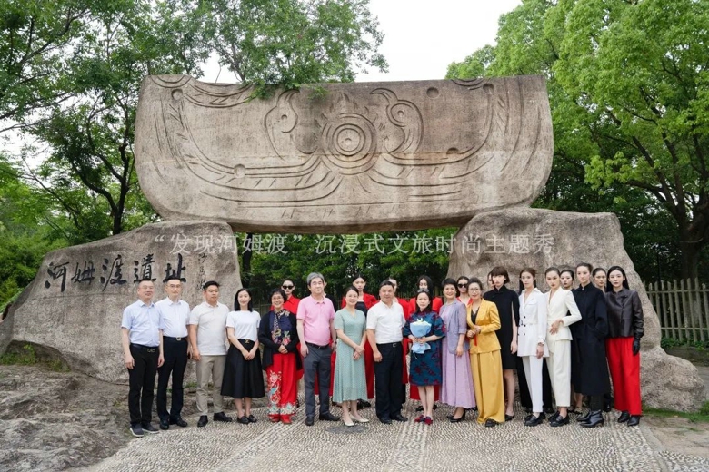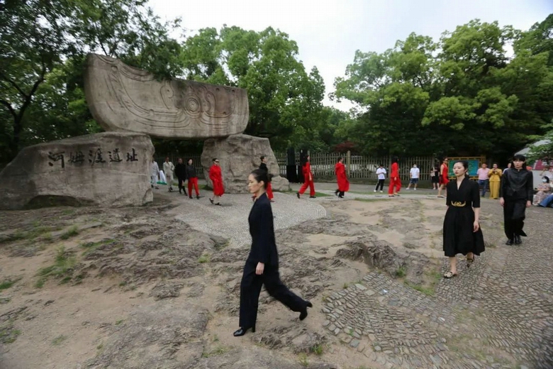 六月杨梅正满林,河姆古渡涌新潮,6月12日, 一场时尚文化与远古文明跨越7000年的对话——“发现·河姆渡”沉浸式文旅时尚主题秀暨红传2023AW新品发布会在浙江余姚河姆渡畔拉开帷幕。