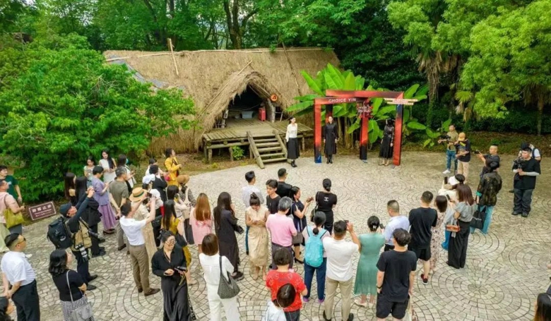 在河姆渡遗址复原体验区活动现场,红传服饰在“耜耕”“干栏式建筑”“纺轮”“双鸟朝阳”四大场景中,淋漓尽致地展示了企业近年来专注传统文化传承、元素挖掘、文化赋能推动产品持续更新、企业不断发展的实践景象。
