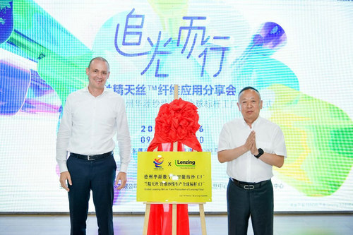 在中国纺联领导、德州市领导以及合伙伙伴的共同见证下,兰精集团全球纺织业务执行副总裁Florian Heubrandner先生和德州华源集团董事长王福华先生,共同为兰精授牌的天丝纤维德州华源纱线生产全球标杆工厂揭幕。