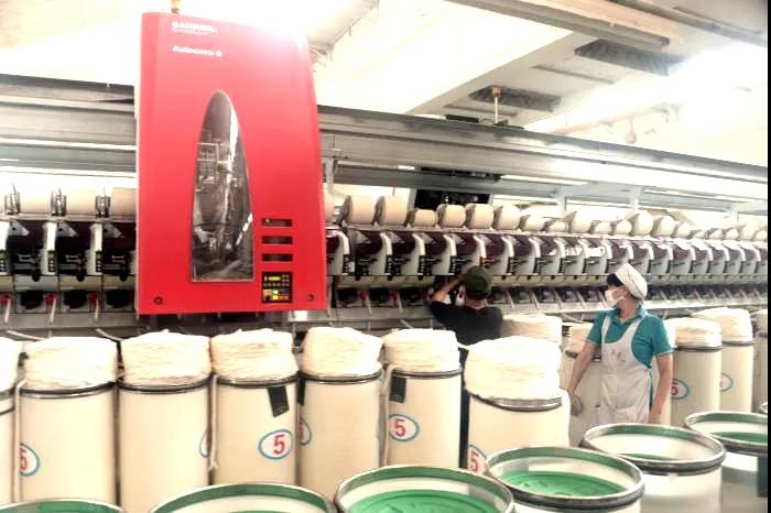 生产设备更新是产业升级和结构调整的重要驱动力。际华3509公司作为一家有着74年历史的“老牌军工”国企,一直致力于新产品技术研发和产业的升级换代。近年来,际华3509公司先后引进国内先进的并条机、清梳联及世界一流的A9全自动转杯纺纱机,打造出公司特有的气流纺生产线名片,是国家级高新技术企业、国家级“专精特新”小巨人企业,国家级绿色工厂示范企业及湖北省农业产业化重点龙头企业。