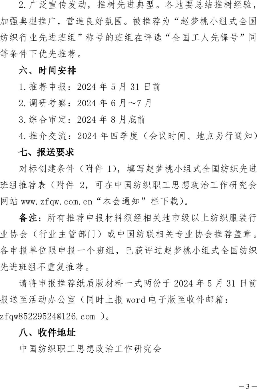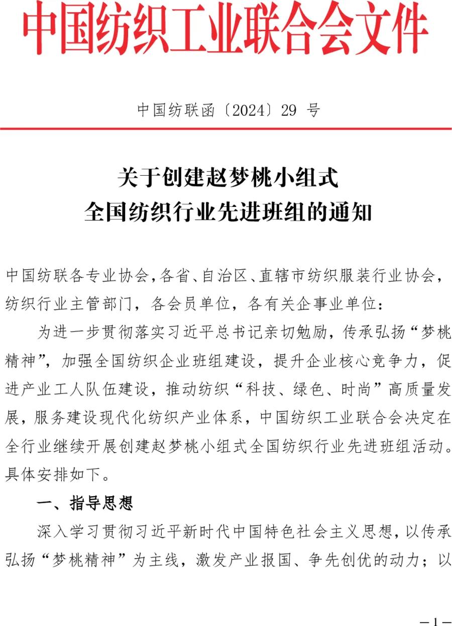 2024创建赵梦桃小组式全国纺织行业先进班组活动申报推荐工作进入倒计时。