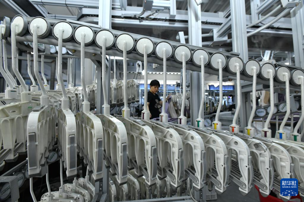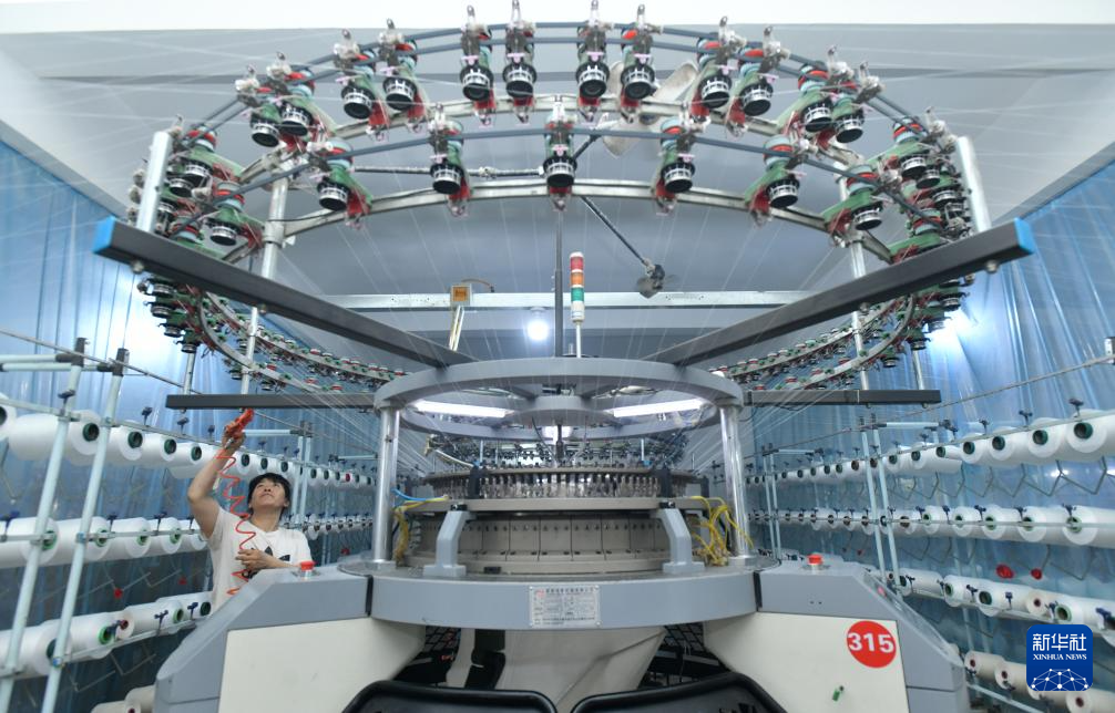 7月5日,河北省肃宁县一家纺织企业的工人在车间内工作。